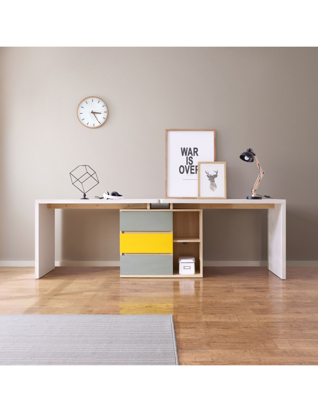 Amplio y versátil, el escritorio doble Levis permite compartir espacio sin perder estilo ni comodidad.
