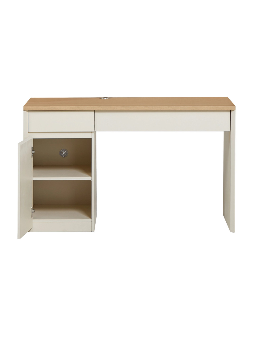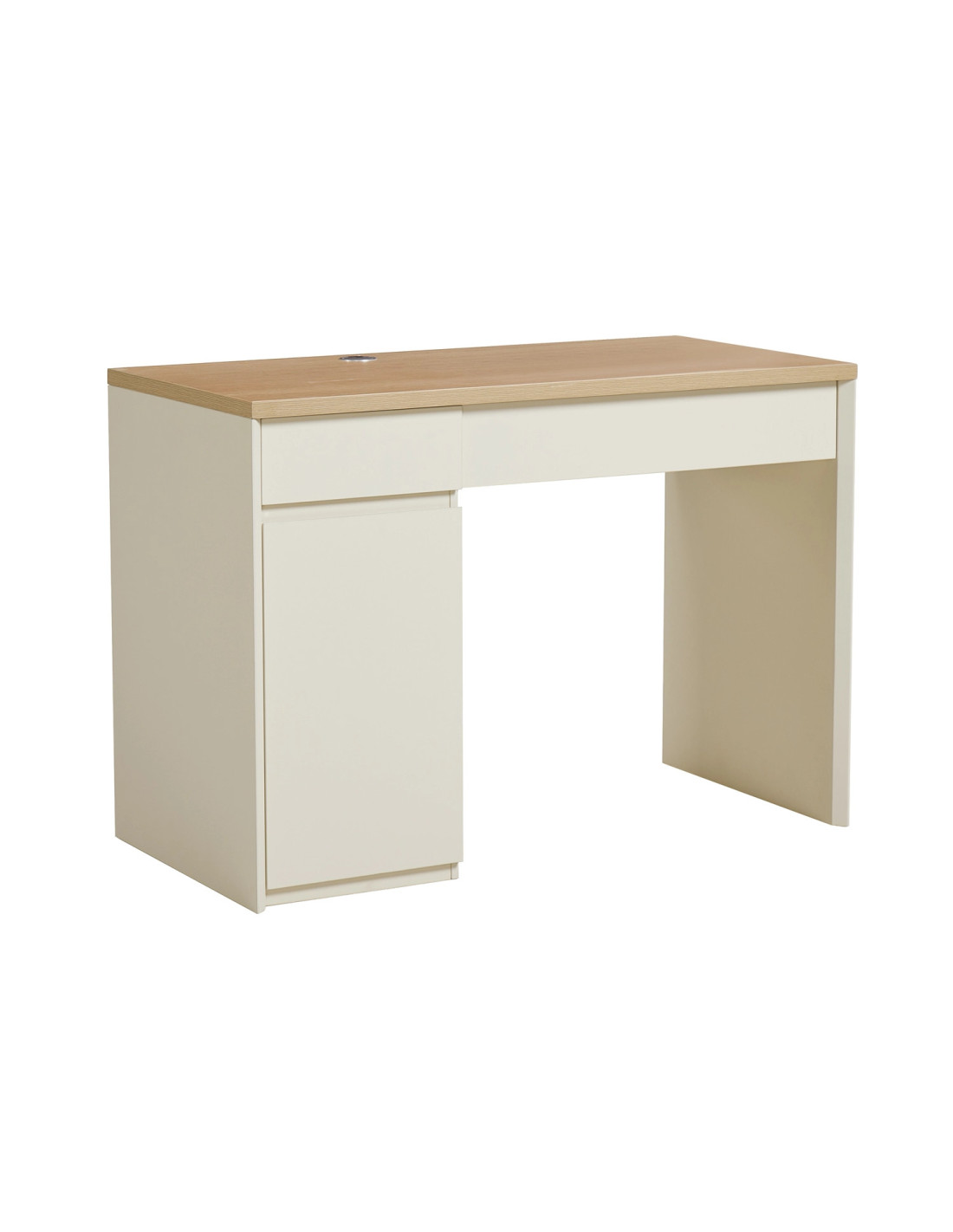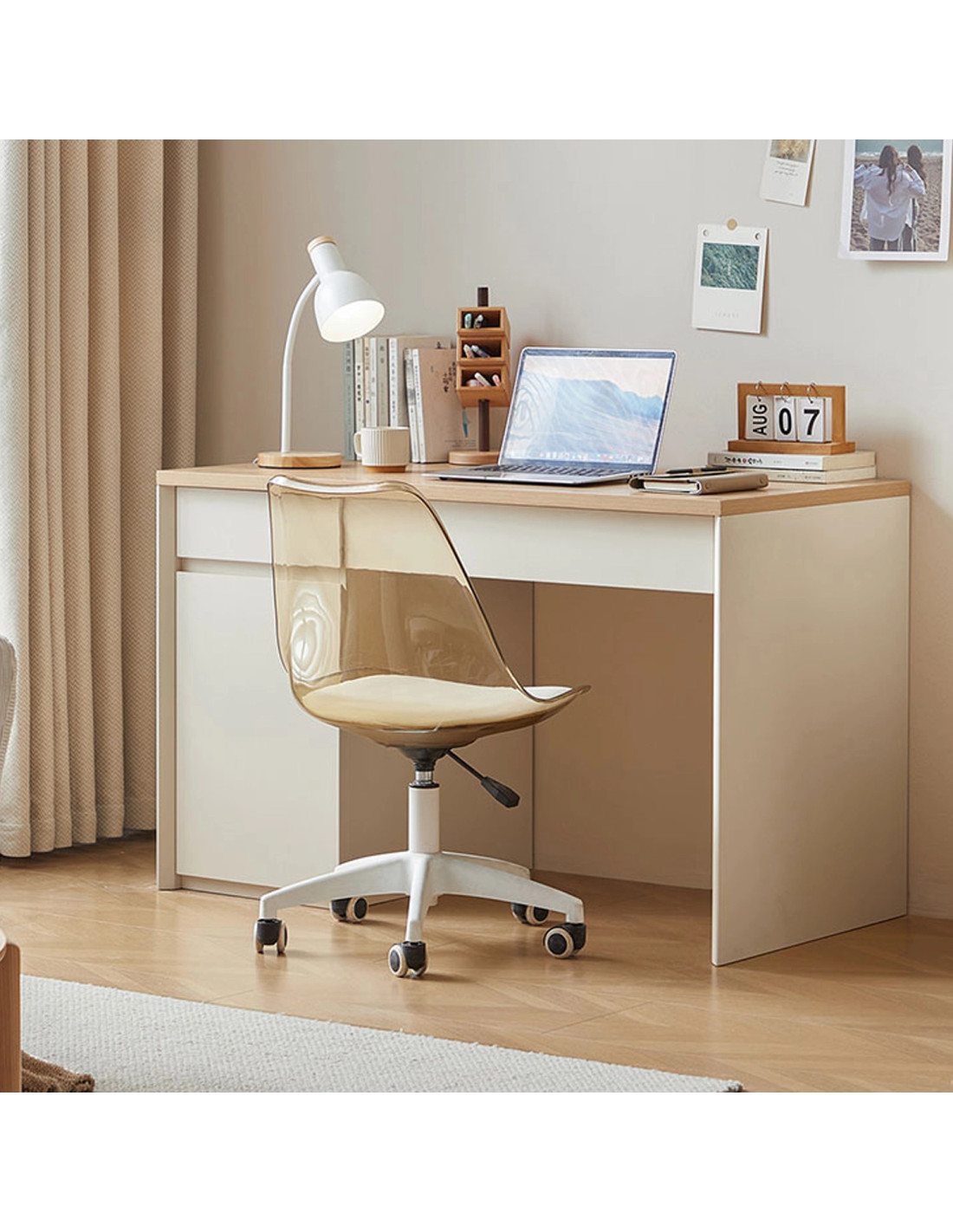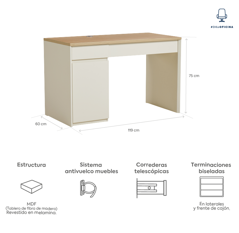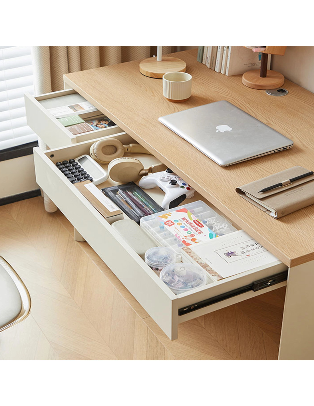 Escritorio moderno con dos cajones amplios y diseño elegante que equilibra orden y estilo.
