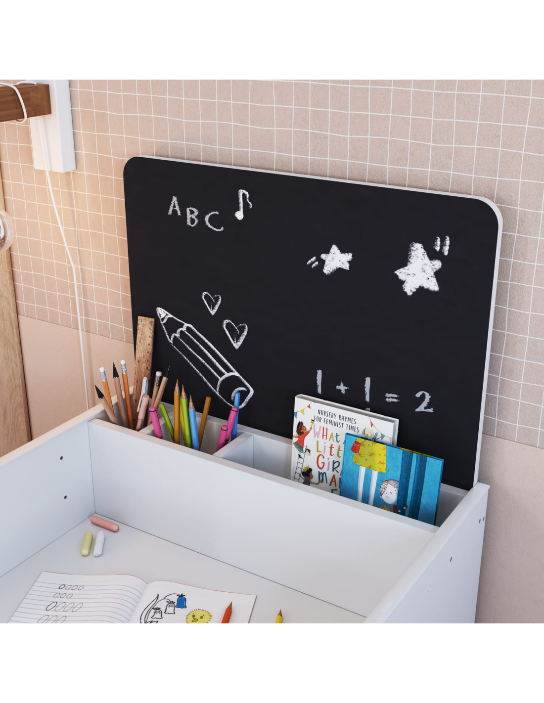 Alegre y funcional, el set Le Petit blanco inspira creatividad en los más pequeños. Ideal para estudiar y jugar.