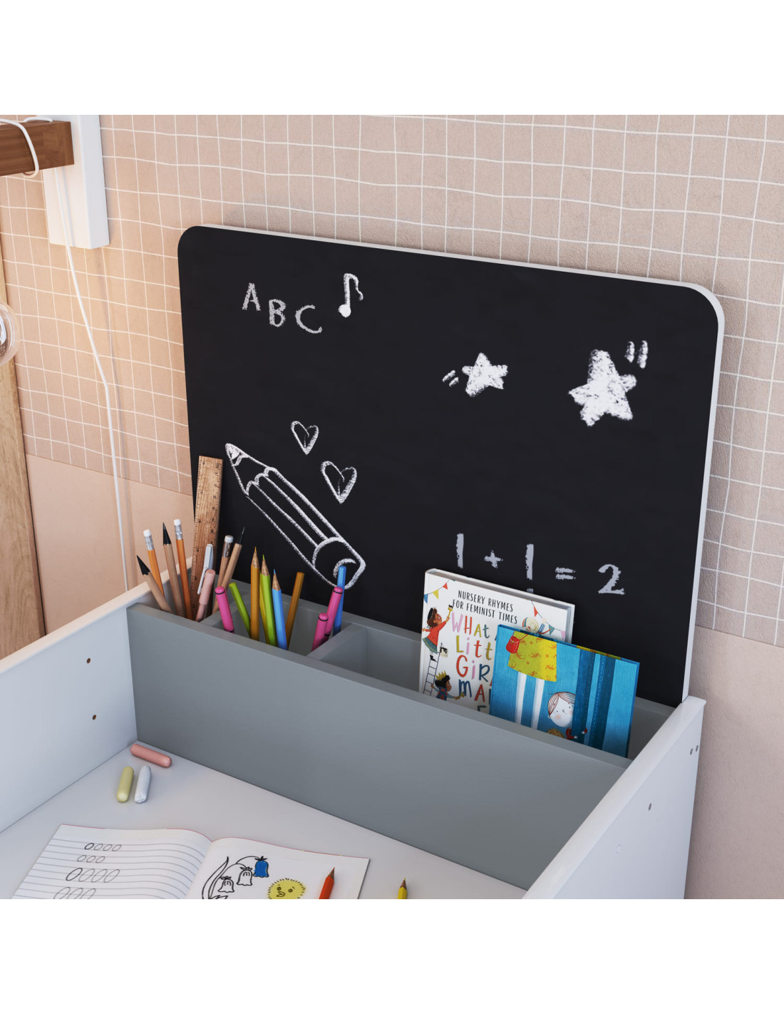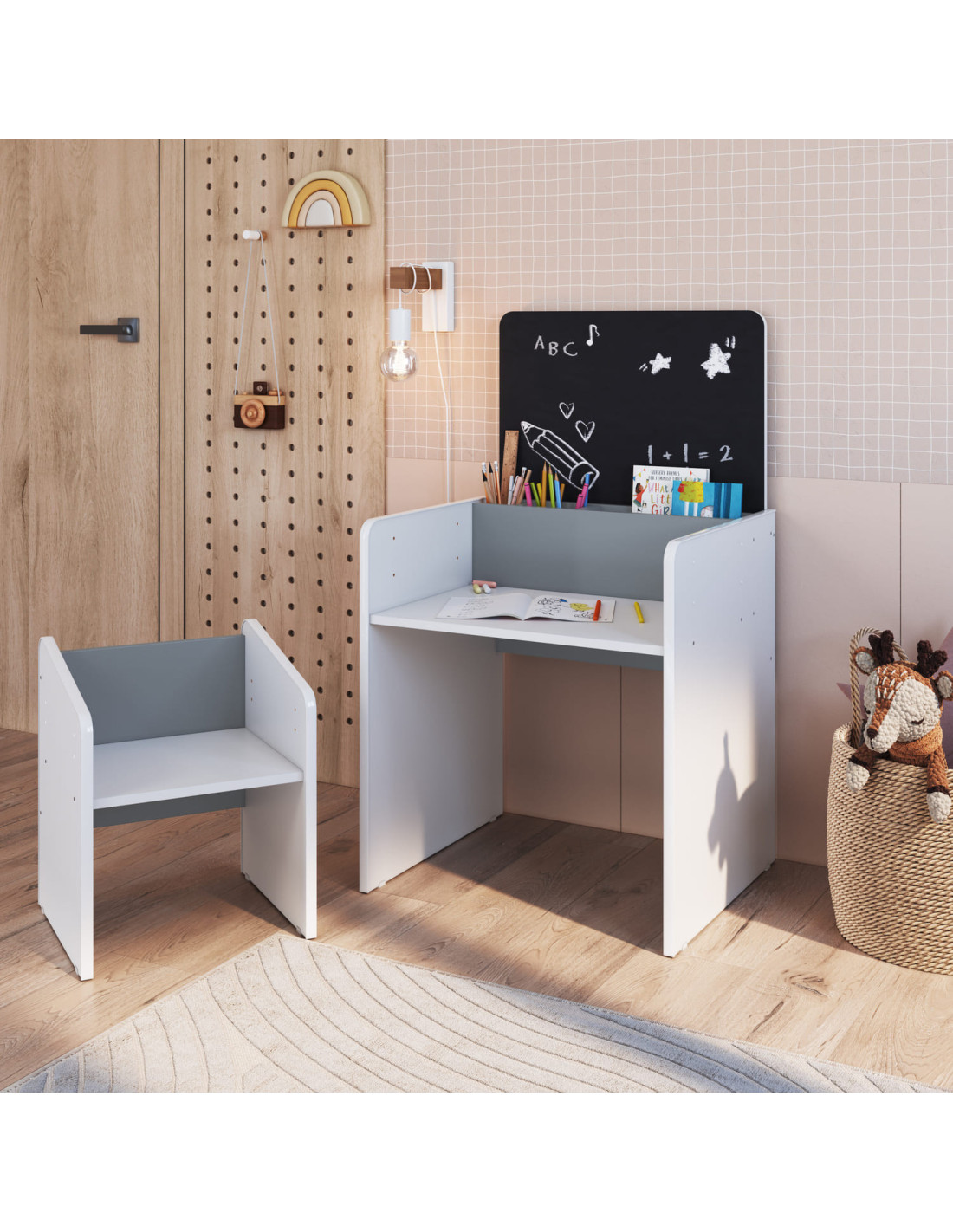 Dale un toque especial al aprendizaje y creatividad de los más pequeños con el Escritorio infantil con Silla Le Petit. Su diseño versátil y funcional permite que los niños exploren su imaginación en un espacio seguro y cómodo. Fabricada en MDP con acabado mate, garantiza resistencia y durabilidad, mientras que las bordes en perfil plástico ofrecen protección extra. La pizarra es perfecta para dibujar y escribir, fomentando la creatividad, y los nichos organizadores mantienen los materiales siempre al alcance. Su altura ajustable, tanto en la mesa como en la silla, se adapta al crecimiento del niño, asegurando comodidad en cada etapa.