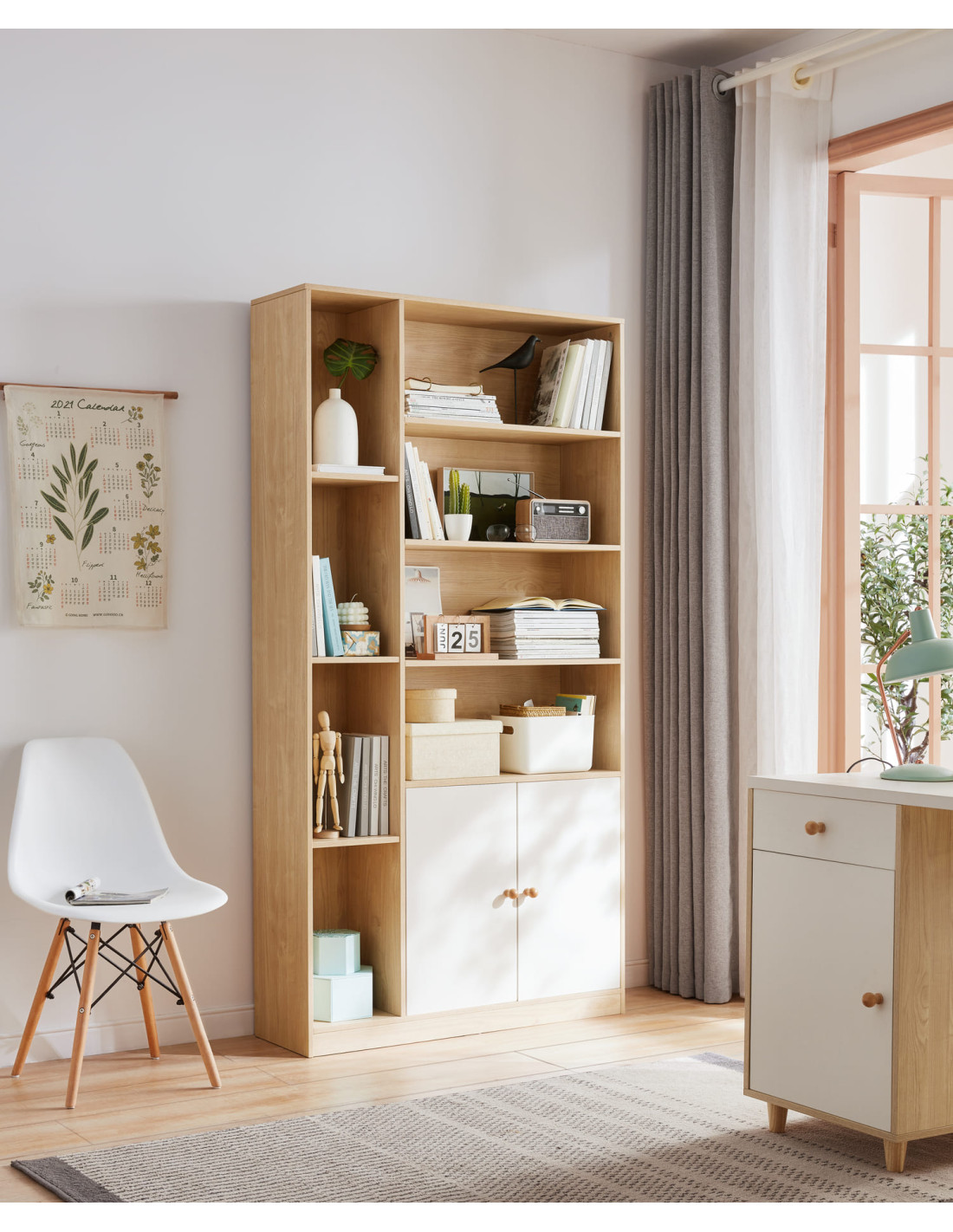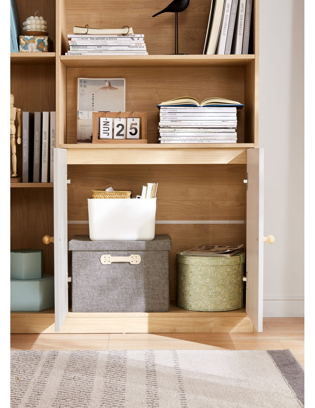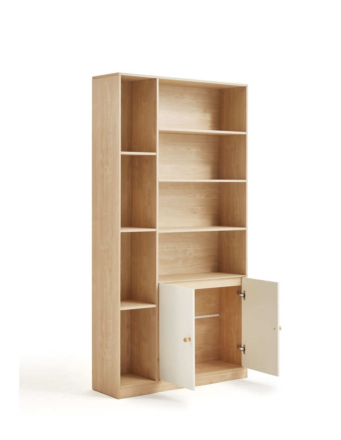 El librero multifuncional Dover 2 puertas es la pieza perfecta para quienes buscan organización con estilo. Con un diseño limpio y contemporáneo, este librero 4 niveles permite guardar y exponer libros y objetos decorativos con total armonía. Fabricado en tablero de melamina de grado E0, cuenta con puertas batientes de cierre suave, tiradores de madera maciza y estantes fijos que aportan solidez y elegancia. Un librero con puertas pensado para transformar tu espacio en un rincón de equilibrio y funcionalidad.