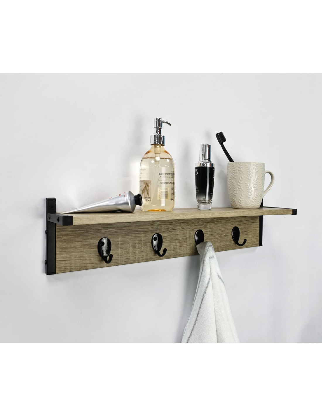 La Repisa Perchero Poesy combina madera y metal para un toque moderno y funcional en la entrada o el dormitorio.