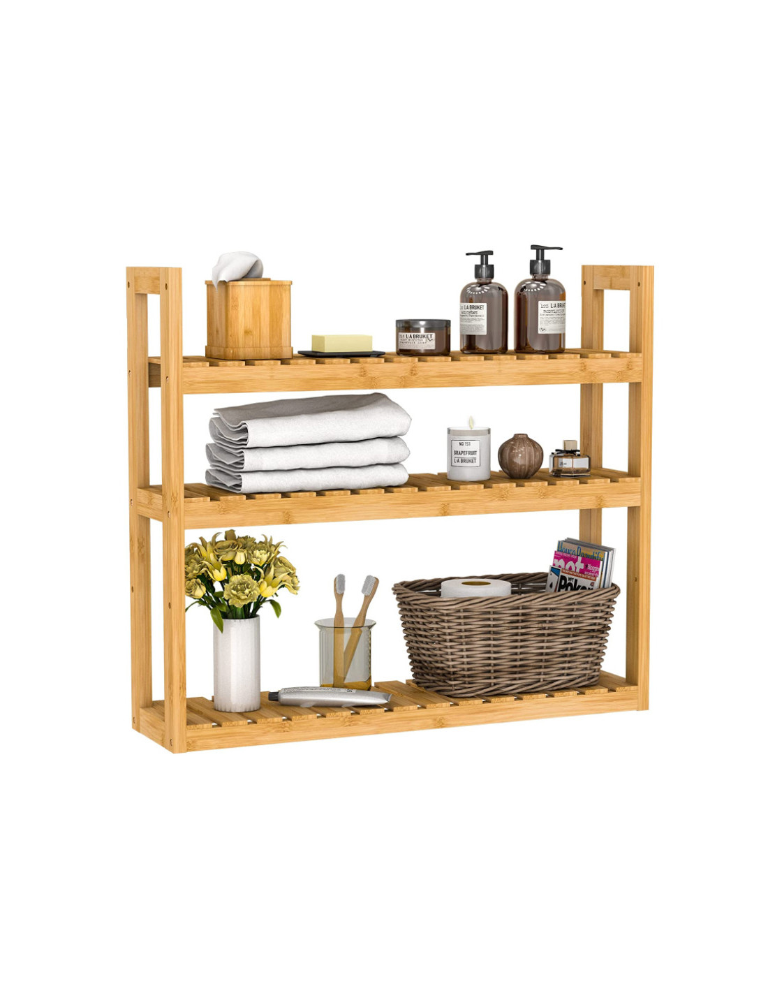 La repisa de bambú de 3 niveles reúne diseño y funcionalidad para transformar rincones del living, baño o cocina en escenas armónicas. El bambú natural introduce textura orgánica y una estética serena, mientras las repisas abiertas facilitan el almacenamiento vertical de toallas, frascos, libros o plantas. De líneas limpias y presencia ligera, esta estantería/organizador se integra con fibras y cerámicas, elevando el ambiente con orden, luz y un toque contemporáneo.