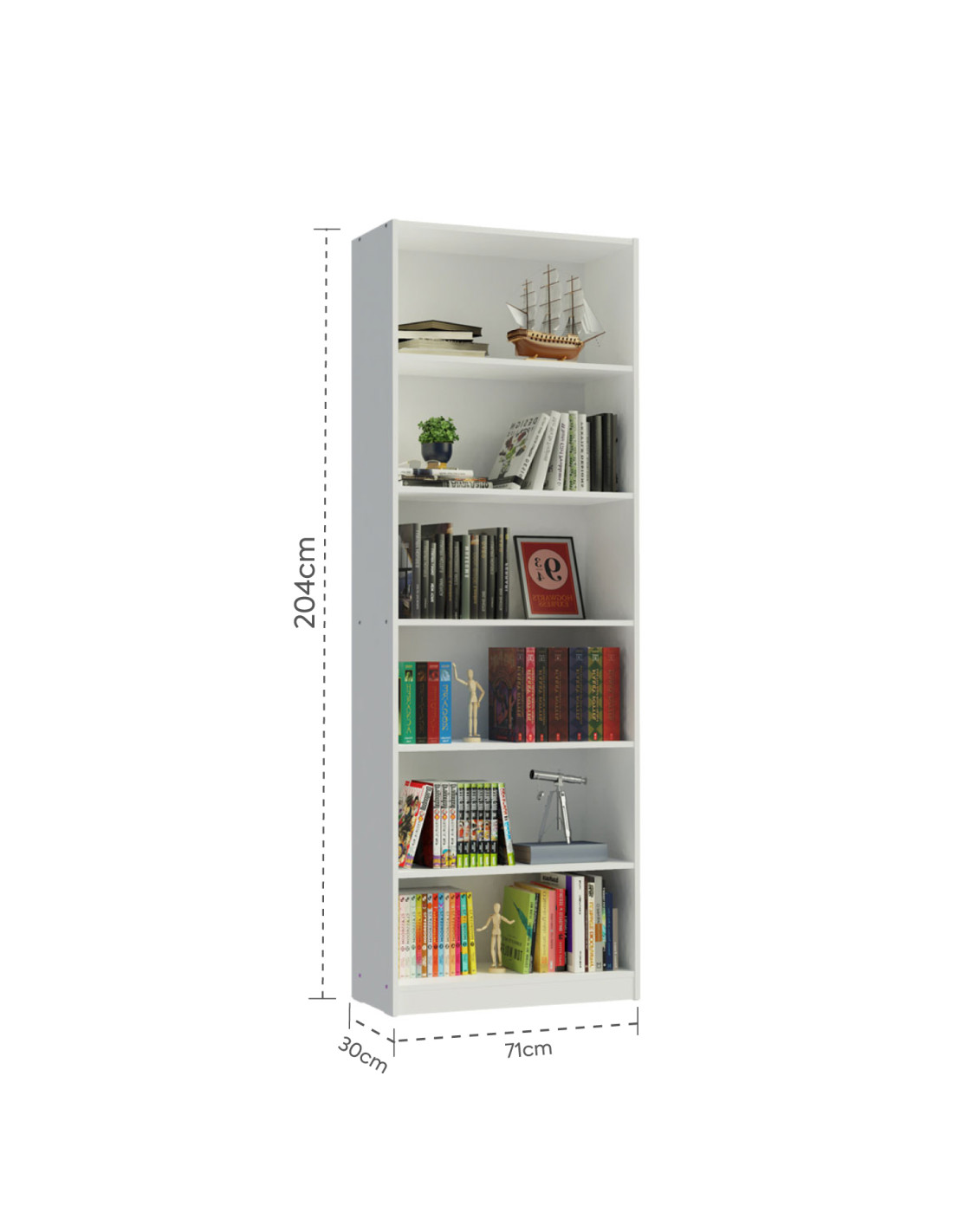 Transforma tu espacio con el Librero Taranto 6 niveles blanco, una pieza de gran altura que se adapta con elegancia a cualquier ambiente, ya sea tu oficina, comedor, sala o dormitorio. Sus seis nichos bien distribuidos son ideales para mantener ordenados tus libros, revistas, material de estudio y objetos decorativos, aportando una sensación de armonía. Fabricado en MDP de gran espesor y con soportes de fijación en la parte superior, este librero garantiza seguridad y estabilidad, elevando el estilo y la funcionalidad de tu hogar.