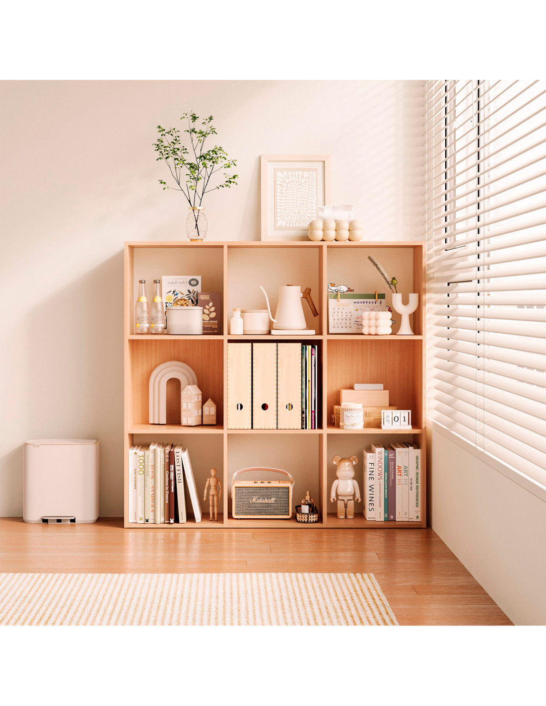 Ilumina el muro y ordena el espacio, aportando verticalidad y presencia serena. Su estructura en melamina tono madera se integra con naturalidad a distintos ambientes. Las proporciones equilibradas y el ritmo de nichos definen un mueble moderno pensado para decoración contemporánea y hogar elegante. Vive en el living, comedor u home office, organizando libros, cuadros y objetos con acceso cómodo. Su diseño depurado favorece una lectura limpia del entorno y mantiene la circulación despejada. El conjunto transmite calma y equilibrio, afinado a un estilo minimalista.
