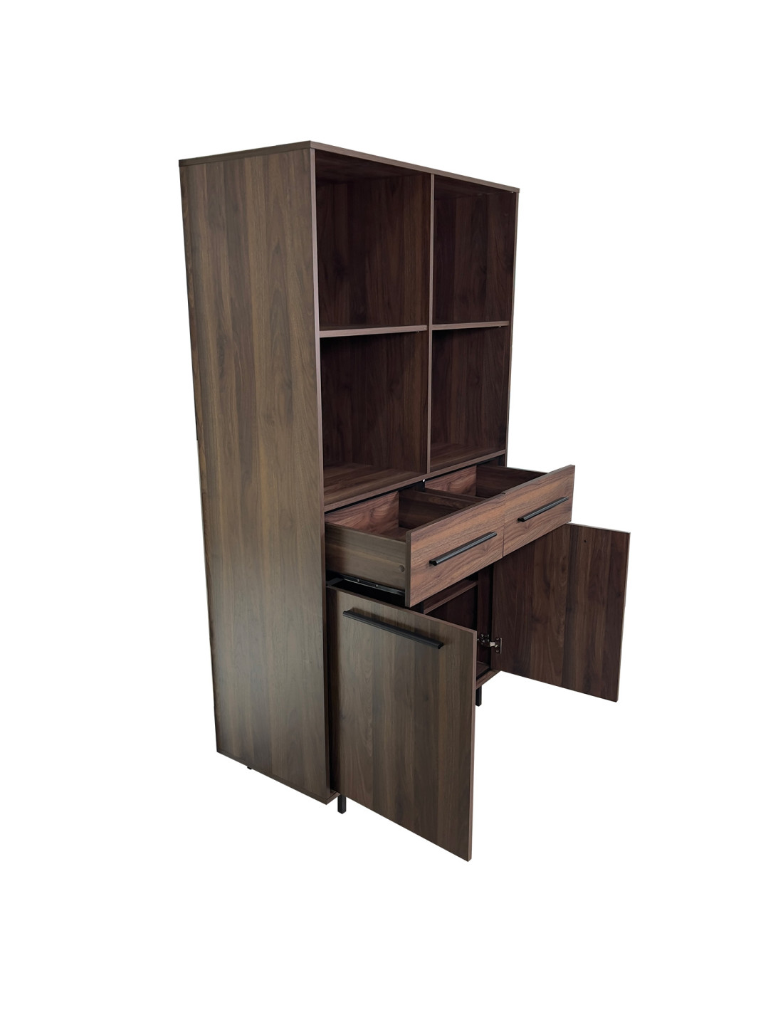 El Estante Lang de 2 cajones y 2 puertas es una pieza que eleva la estética de cualquier espacio mientras satisface las necesidades de almacenamiento con estilo. Fabricado en MDP de alta calidad, su diseño alto combina líneas limpias y un acabado sofisticado que lo convierte en el complemento ideal para una decoración moderna. Los cajones amplios y las puertas bien distribuidas ofrecen un espacio funcional para organizar con elegancia, transformando cada rincón de tu hogar en un reflejo de buen gusto y orden.