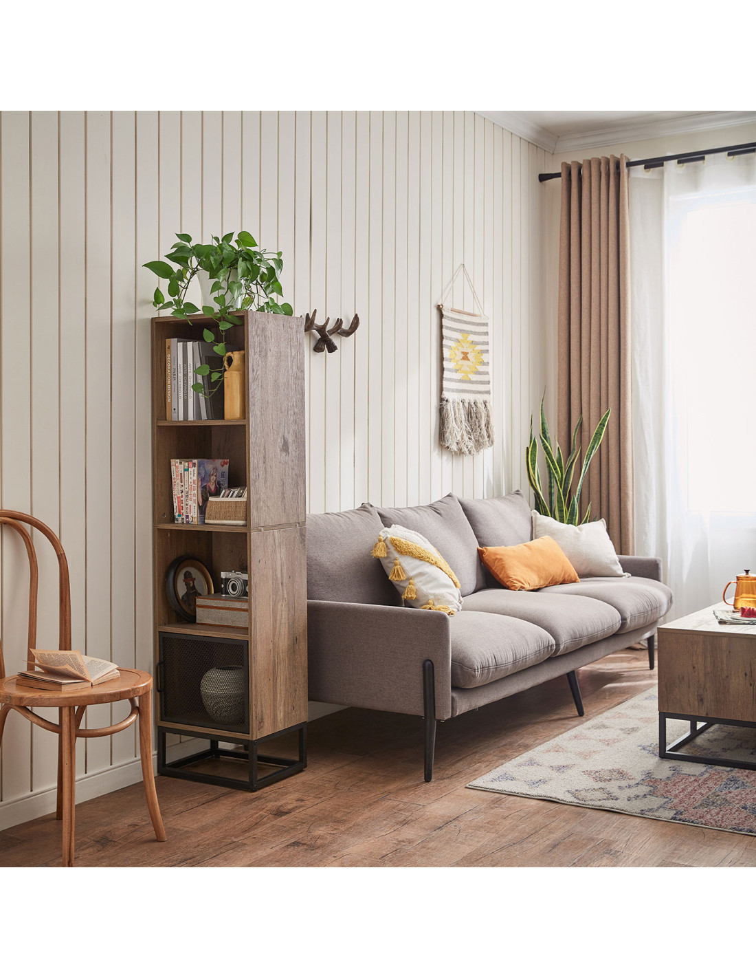 El estante industrial Memphis de 3 niveles combina estilo y funcionalidad en una pieza que transforma cualquier espacio. Con su diseño industrial, este estante de madera evoca una estética moderna y auténtica, ideal para quienes buscan un equilibrio entre calidez y carácter. Cada uno de sus tres niveles ofrece espacio amplio para organizar tus libros, decoraciones o elementos esenciales, convirtiéndose en un estante organizador que aporta orden y personalidad a tu hogar. Su estructura sólida y diseño versátil lo hacen perfecto para destacar en cualquier ambiente con un toque de elegancia y practicidad.