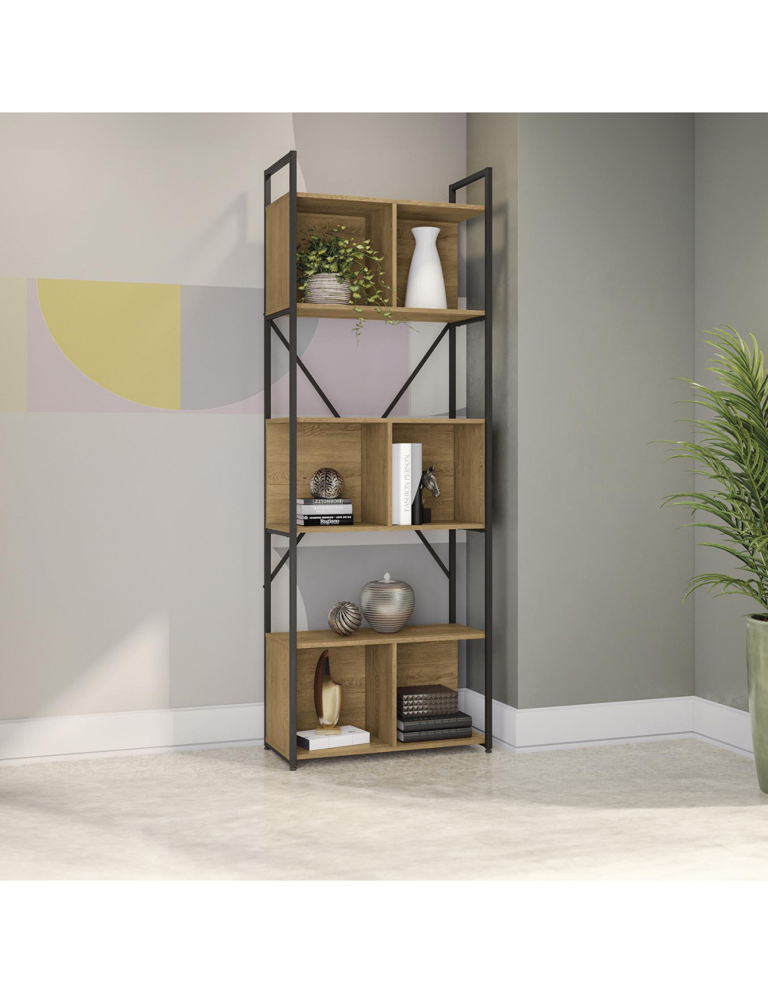 El Estante Industrial Flint es la combinación perfecta de estilo y funcionalidad para cualquier espacio. Su estructura de MDP asegura durabilidad y resistencia, mientras las patas metálicas de color negro aportan una base robusta y un toque contemporáneo. Con niveles que alternan entre nichos cerrados y espacios abiertos, ofrece una solución versátil para organizar y exhibir tus objetos favoritos. Su diseño industrial añade una estética moderna y sofisticada, convirtiendo este estante en una pieza clave para transformar tu living comedor u oficina.