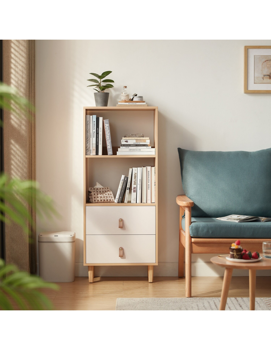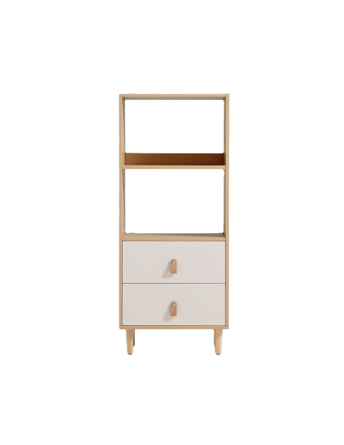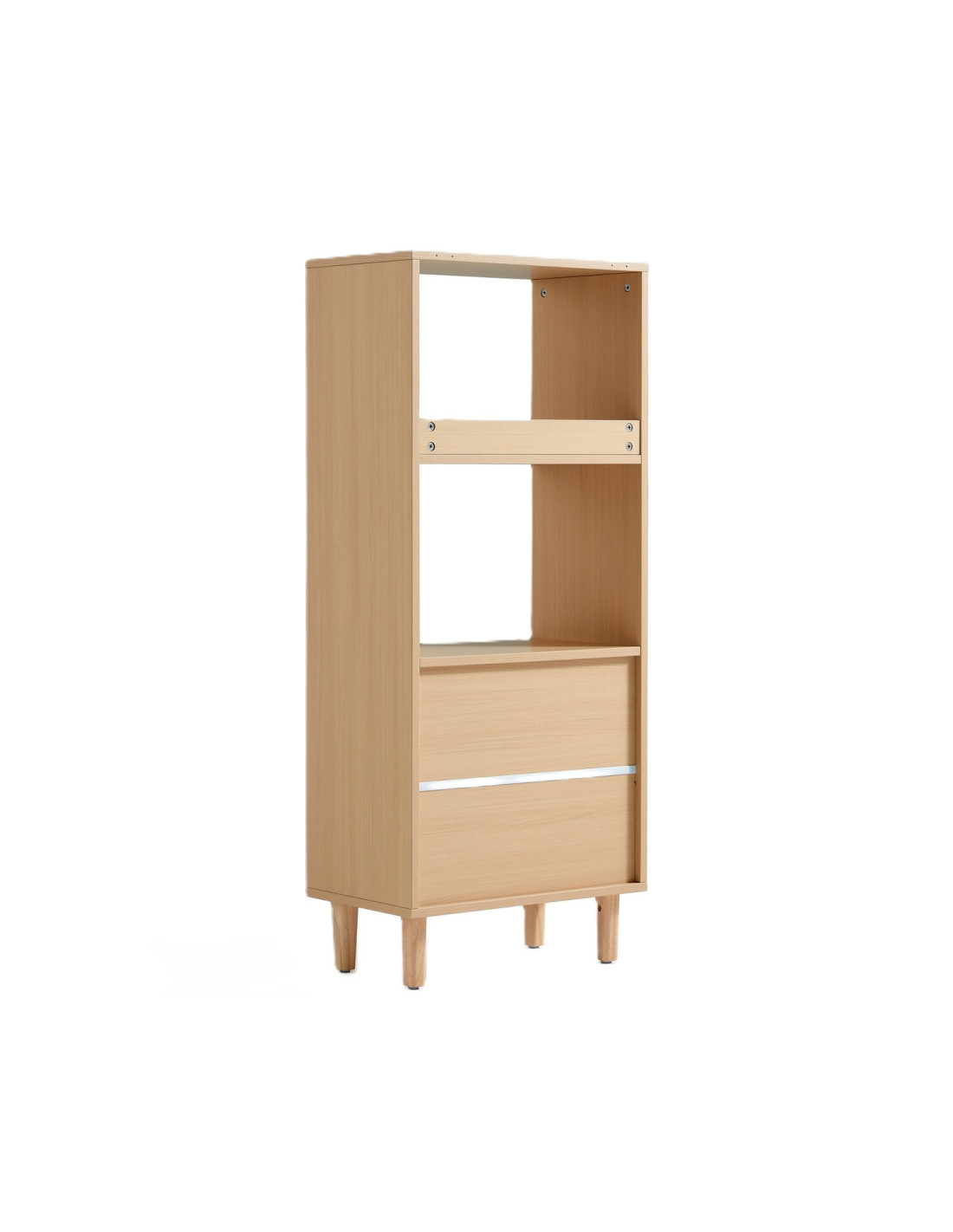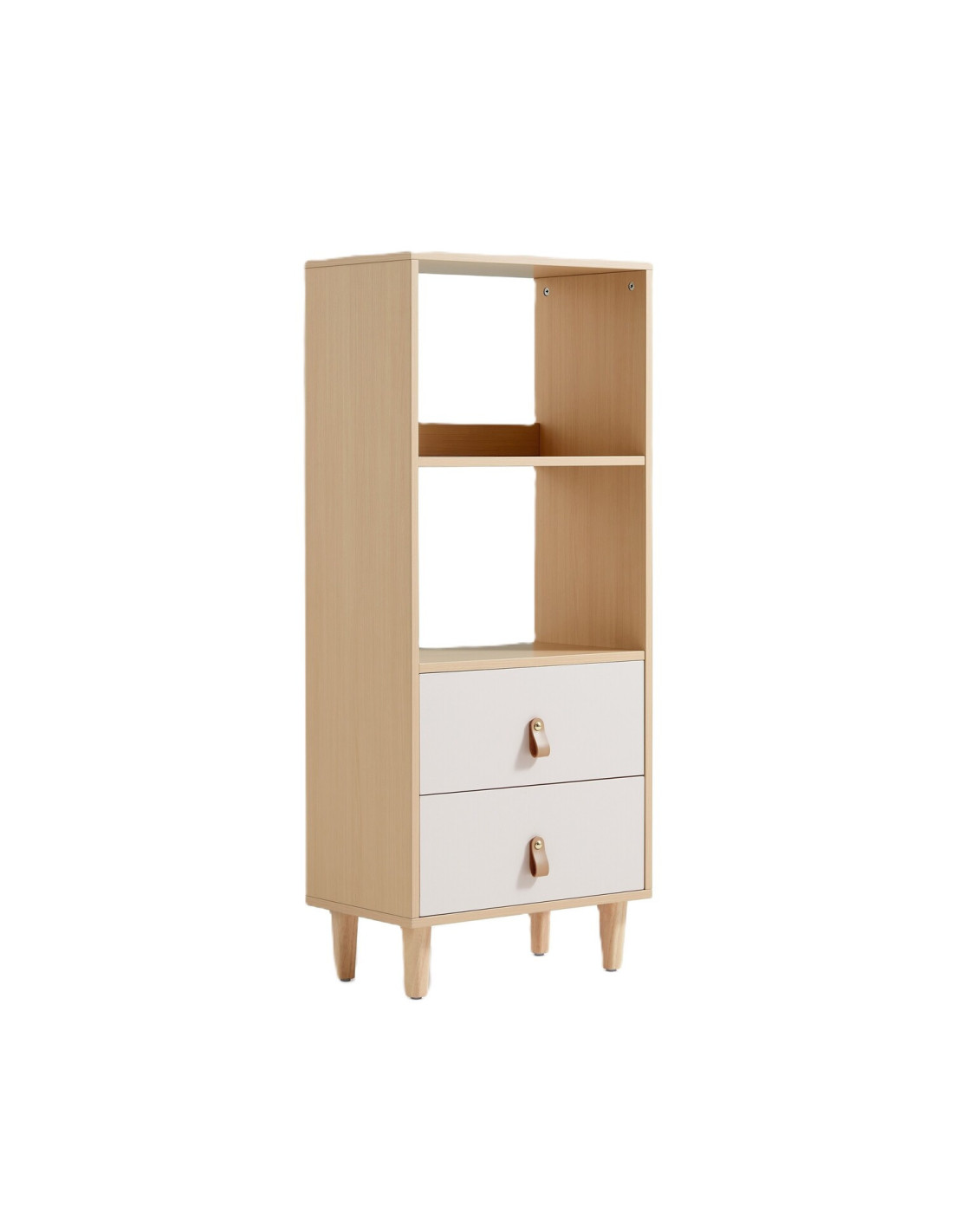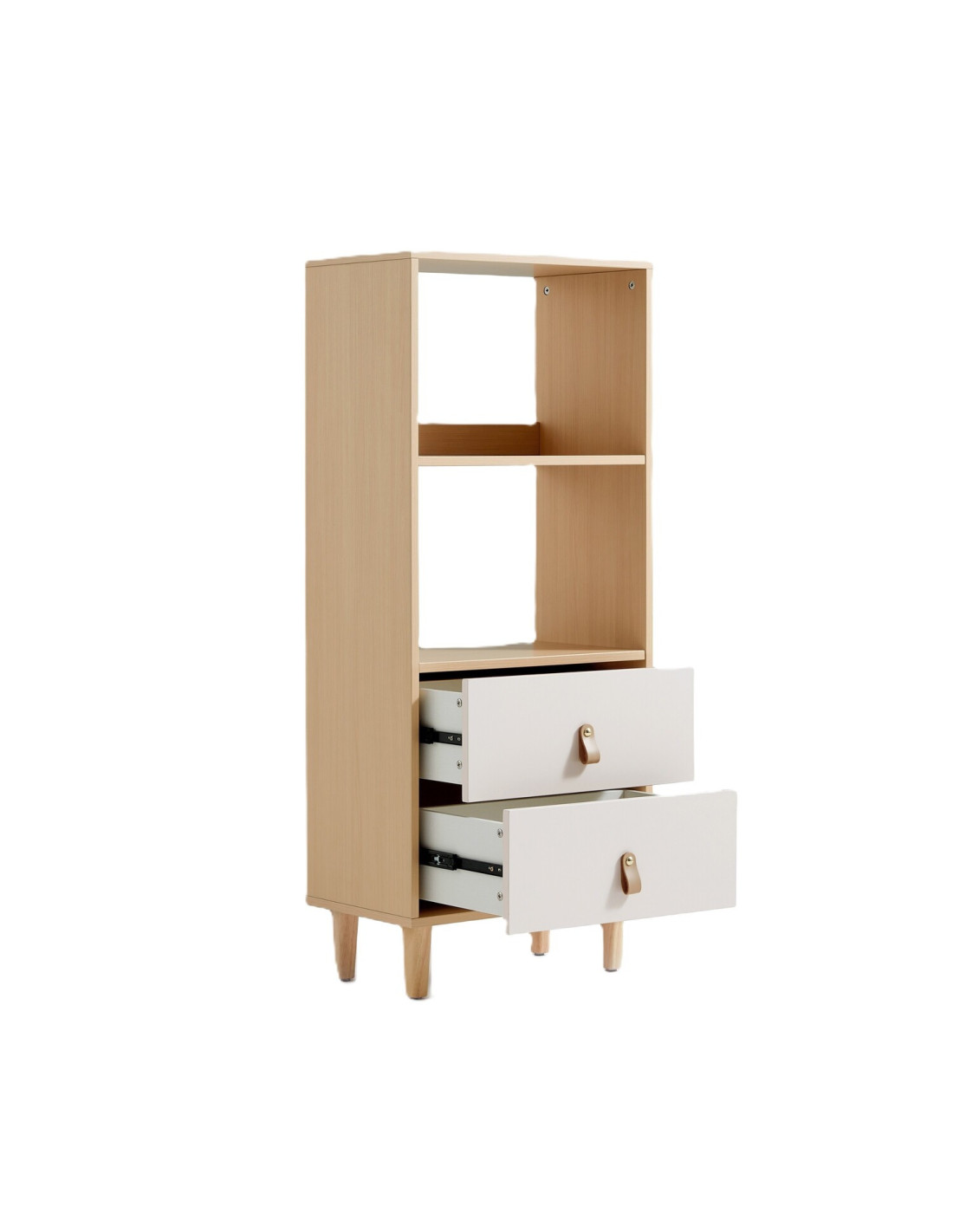 El Estante Mila de 119 cm combina estilo y funcionalidad para transformar cualquier espacio con un diseño elegante y versátil. Su estructura de melamina garantiza durabilidad, mientras que los dos cajones con rieles telescópicos ofrecen un deslizamiento silencioso y almacenamiento discreto para pequeños objetos. Los compartimentos abiertos permiten exhibir libros, colecciones o piezas decorativas con armonía. Elevado sobre patas de madera de caucho, facilita la limpieza del suelo y aporta un toque moderno ideal para el living, la oficina o el dormitorio.