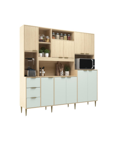 La cocina compacta Fernanda en color menta transforma cualquier espacio en un rincón lleno de frescura y estilo. Con su diseño funcional y moderno, este mueble de cocina aprovecha cada centímetro, ofreciendo una solución perfecta para quienes buscan elegancia y practicidad en su hogar. El suave tono menta aporta un aire renovado y luminoso, convirtiendo cada momento en la cocina en una experiencia más placentera. Diseñada para adaptarse a tu vida diaria, esta cocina compacta combina a la perfección estética y utilidad, elevando el ambiente con una presencia única y acogedora.