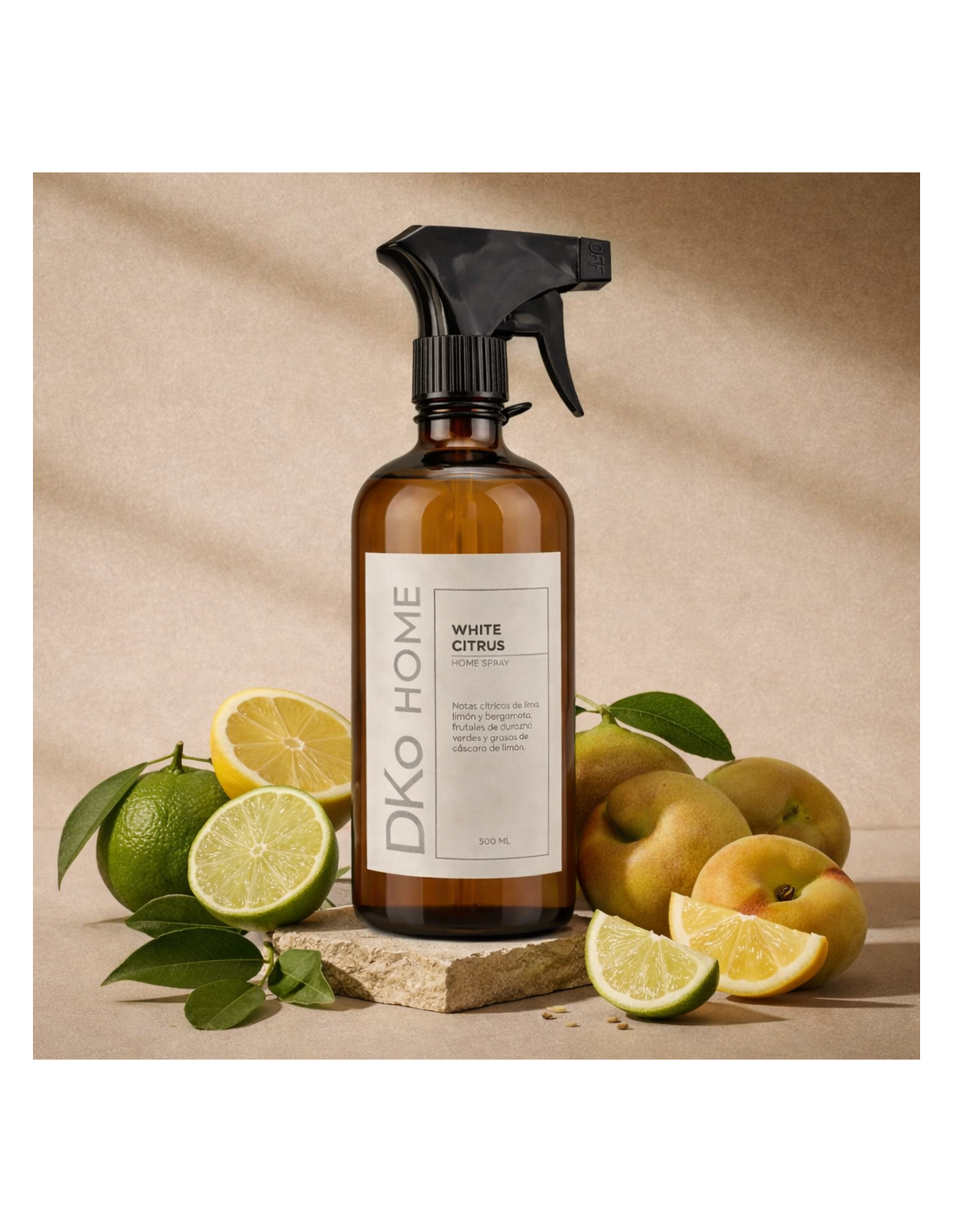 El Home Spray DKoHome White Citrus entrega una sensación fresca y luminosa que revitaliza tus espacios. Su fragancia cítrica es ideal para mantener el hogar con un aroma limpio y energizante.