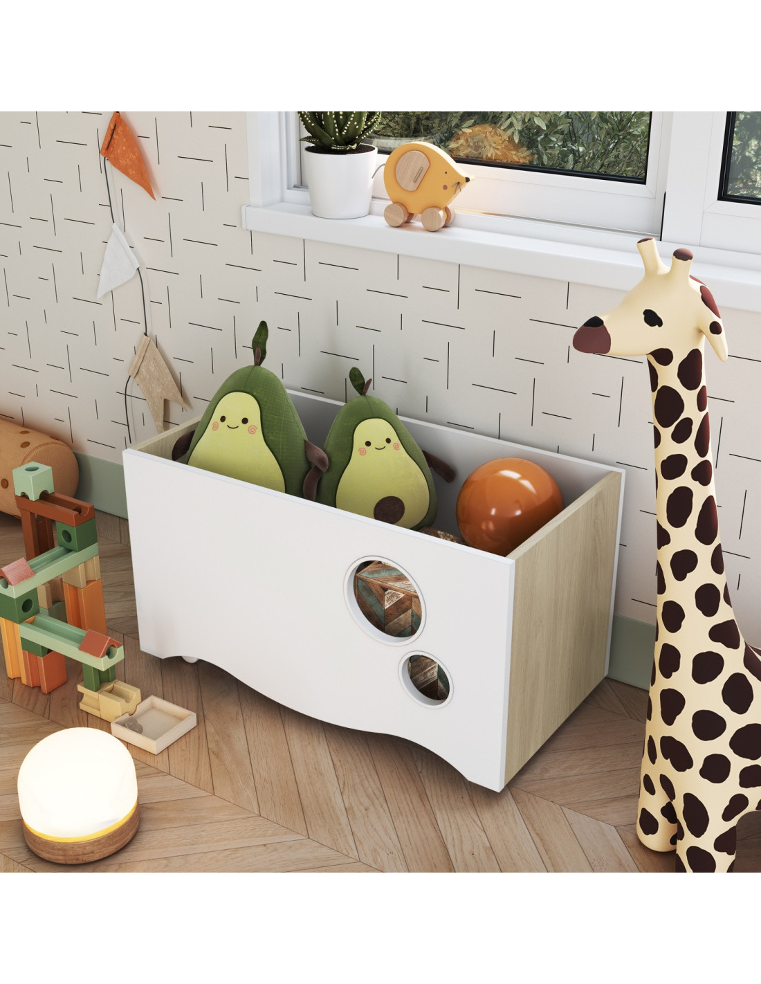 Alegre y funcional, la caja Encanto ayuda a mantener el orden con un toque lúdico. Perfecta para habitaciones infantiles modernas.