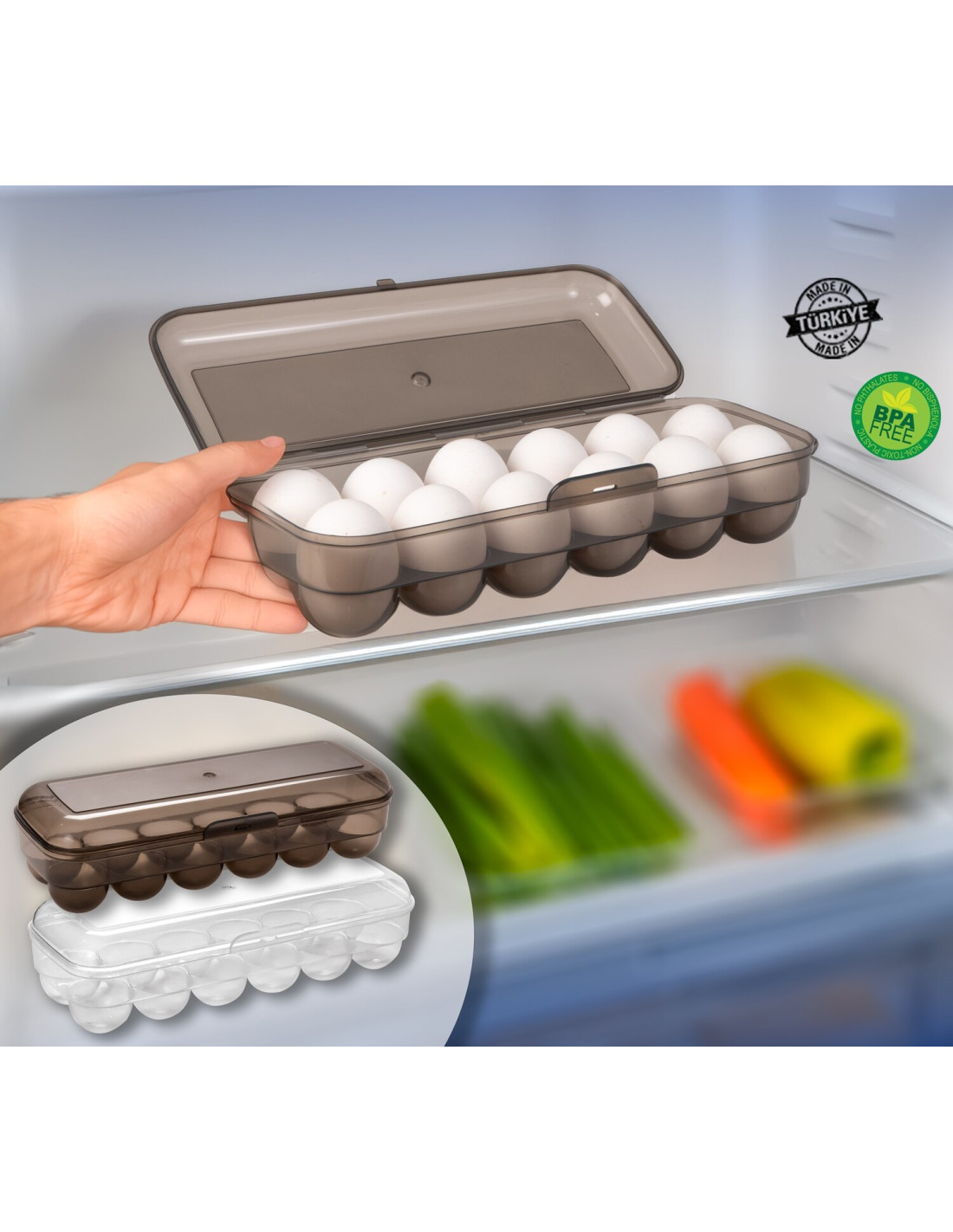 Portahuevos transparente con tapa