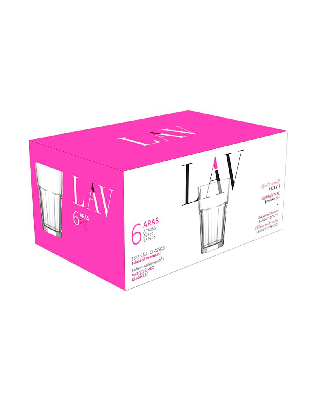 Desde frutas cocidas hasta limonada helada, los vasos de agua LAV Aras son perfectos para presentar cualquier bebida. Con capacidad funcional de 365 ml (12.25 oz), estos vasos altos se adaptan a tu desayuno, almuerzo o cena con estilo y funcionalidad. El set de 6 piezas te salvará en eventos inesperados. No dudes en agregar estos versátiles vasos a tu carrito para tener siempre un juego útil en tu cocina.