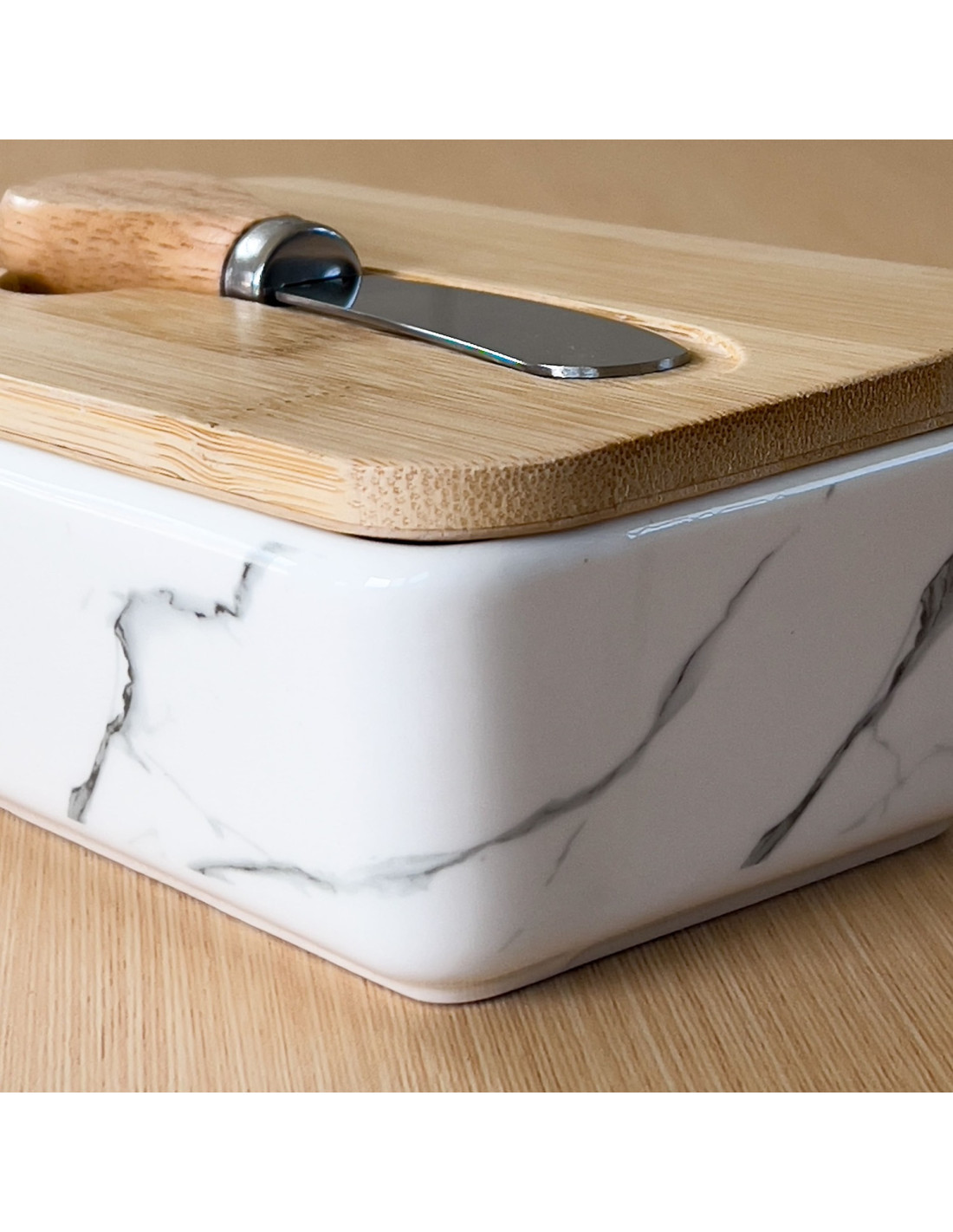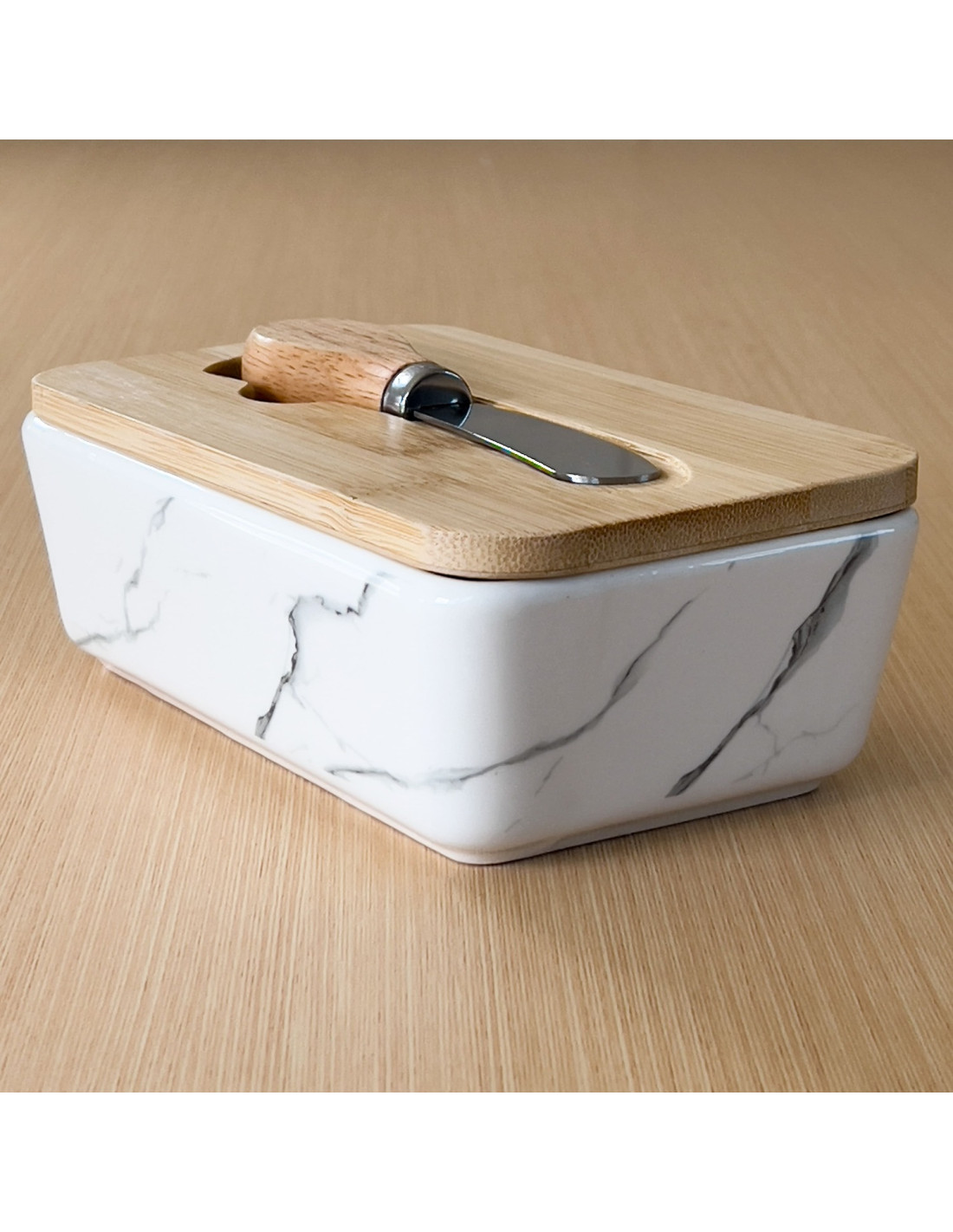 Mantequillero con cuchillo bambú mármol 15x10x7cm