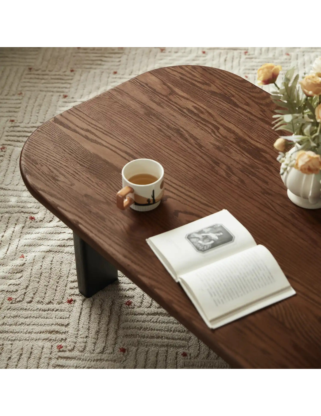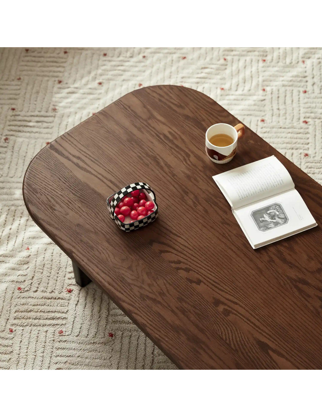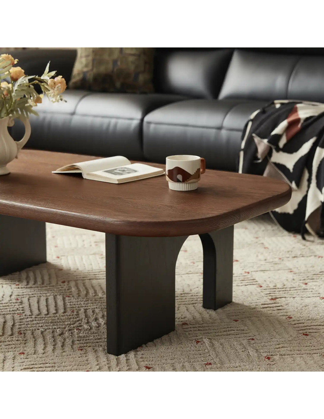 Mesa de centro en madera maciza con cubierta de piedra sinterizada mate, ideal para aportar elegancia, resistencia y calidez a tu living.
