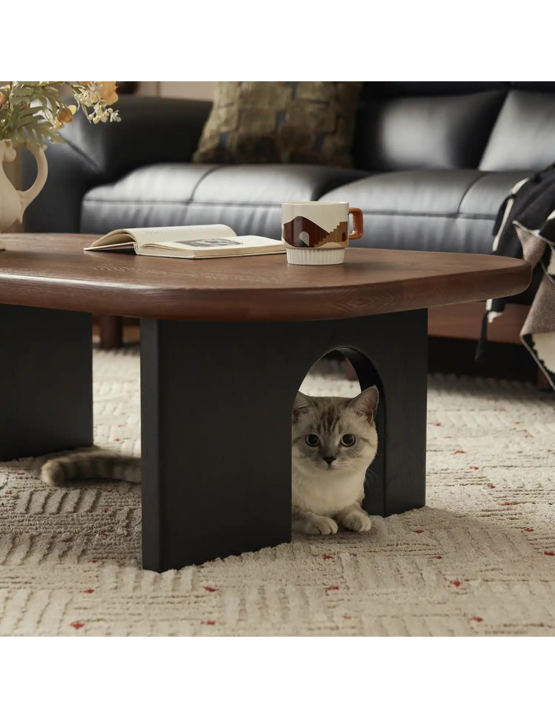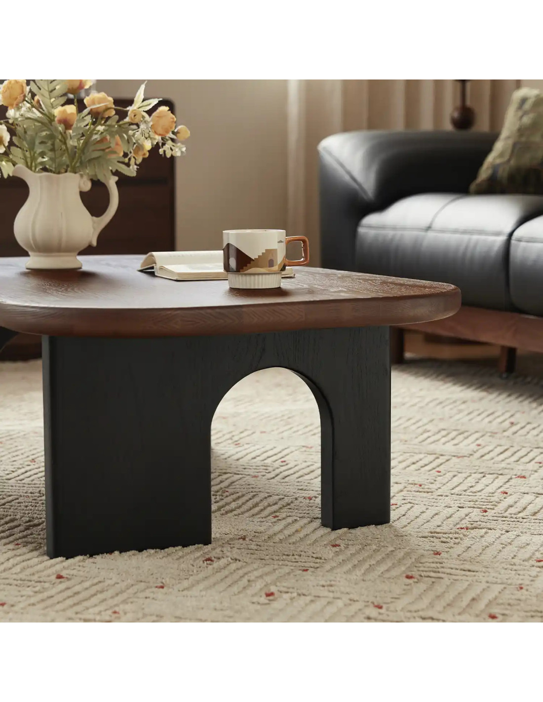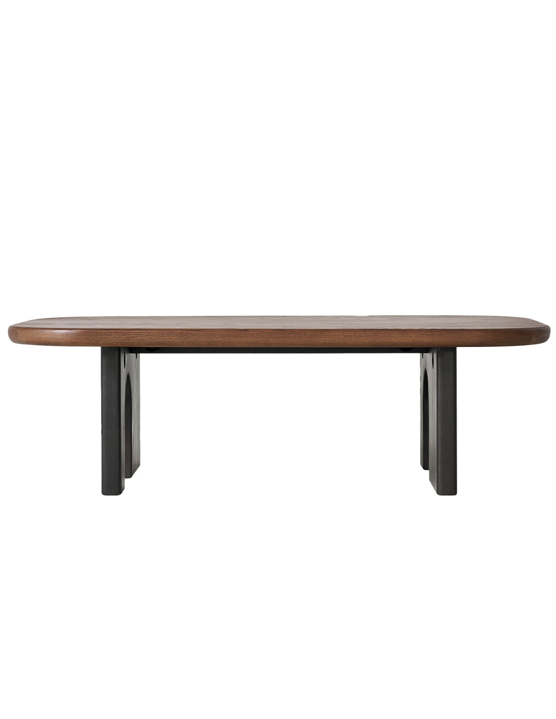 Mesa de centro en madera maciza con cubierta de piedra sinterizada mate, ideal para aportar elegancia, resistencia y calidez a tu living.