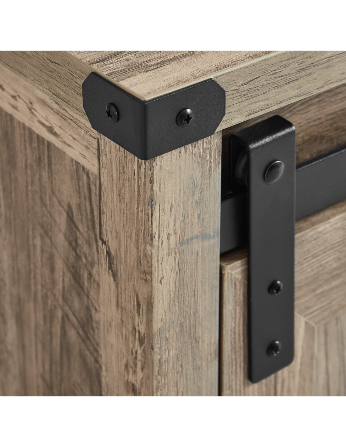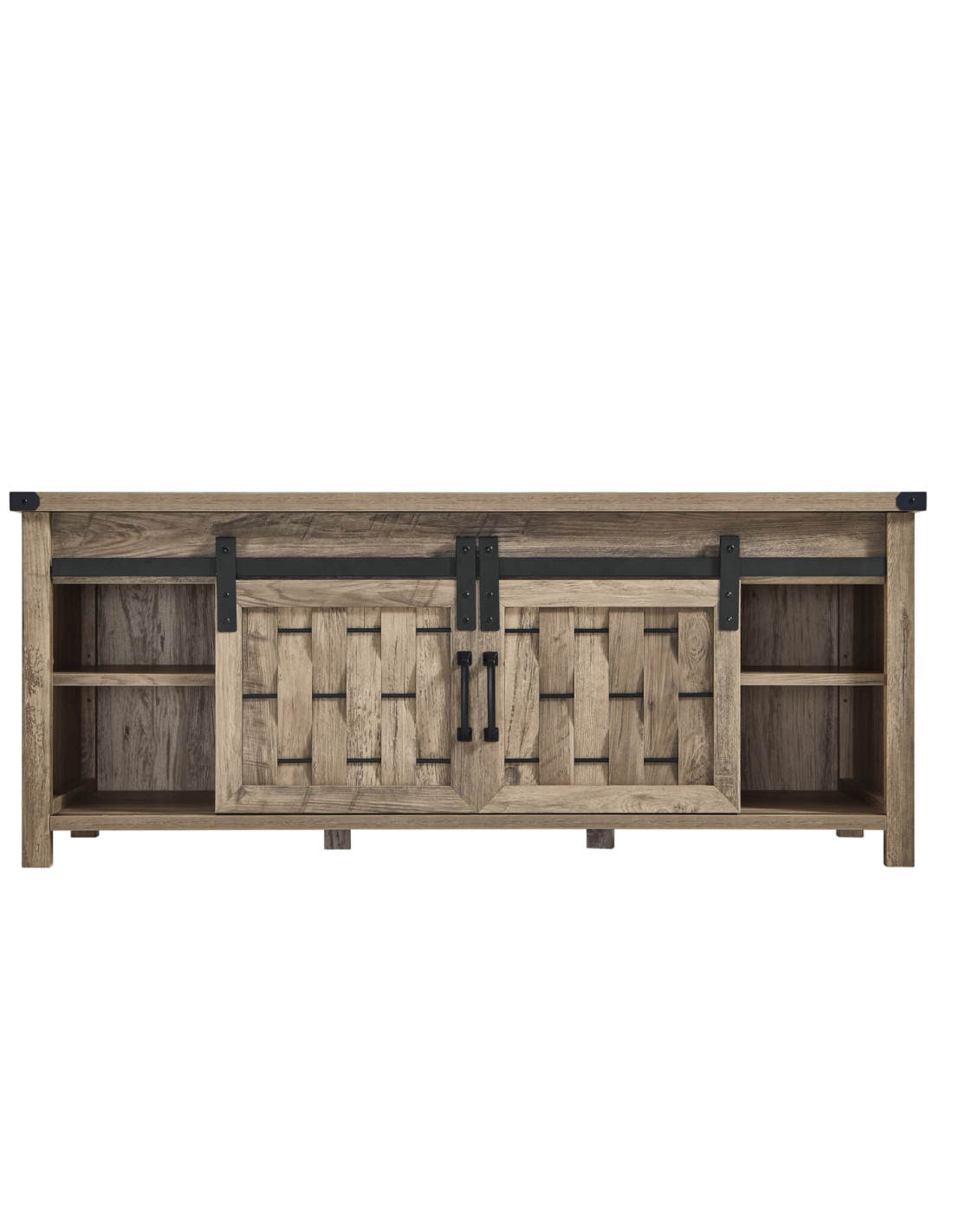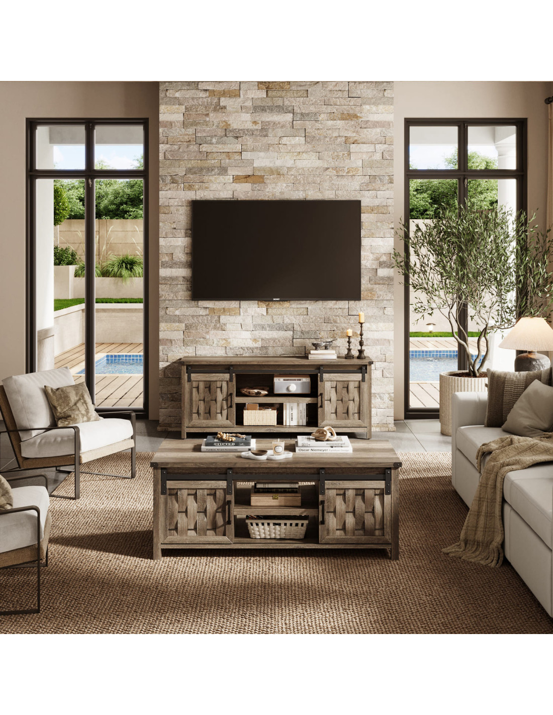 La mesa de centro Vinh café combina un diseño rústico con toques modernos, convirtiéndose en el punto focal de tu sala de estar. Su acabado en madera con patrones entretejidos y detalles metálicos en los bordes aportan carácter y calidez. Las dos puertas correderas permiten un acceso fácil a los compartimentos, cada uno con estantes ajustables para adaptarse a tus necesidades. Los orificios para cables mantienen el orden, mientras los niveladores ajustables aseguran estabilidad en cualquier superficie. Fabricada con tablero de partículas P2 y MDF laminado, esta mesa ofrece una robustez excepcional.