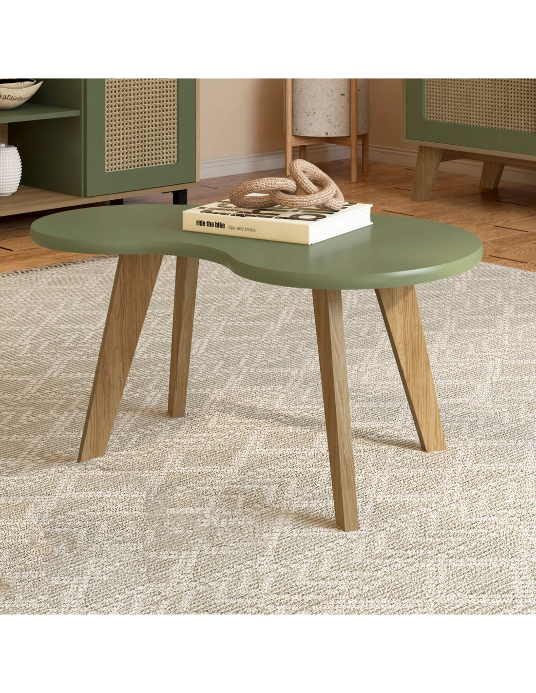 Mesa centro orgánica menta, diseño moderno y acogedor que armoniza tus espacios con estilo.