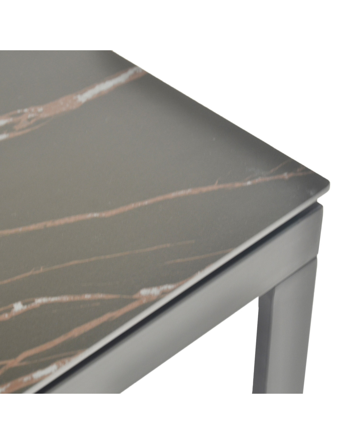 La Mesa de Centro Cloonee se distingue por su cubierta de piedra sinterizada que no solo es resistente sino también estéticamente atractivo. Este material ofrece una superficie elegante y fácil de mantener, ideal para el uso diario. Su estructura de metal asegura que la mesa mantenga su integridad y estilo durante muchos años. El diseño moderno de la Mesa Cloonee la convierte en una pieza central versátil que puede complementar una variedad de decoraciones interiores.