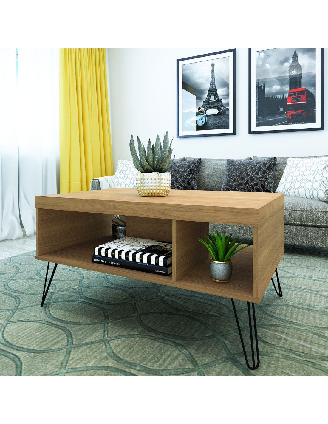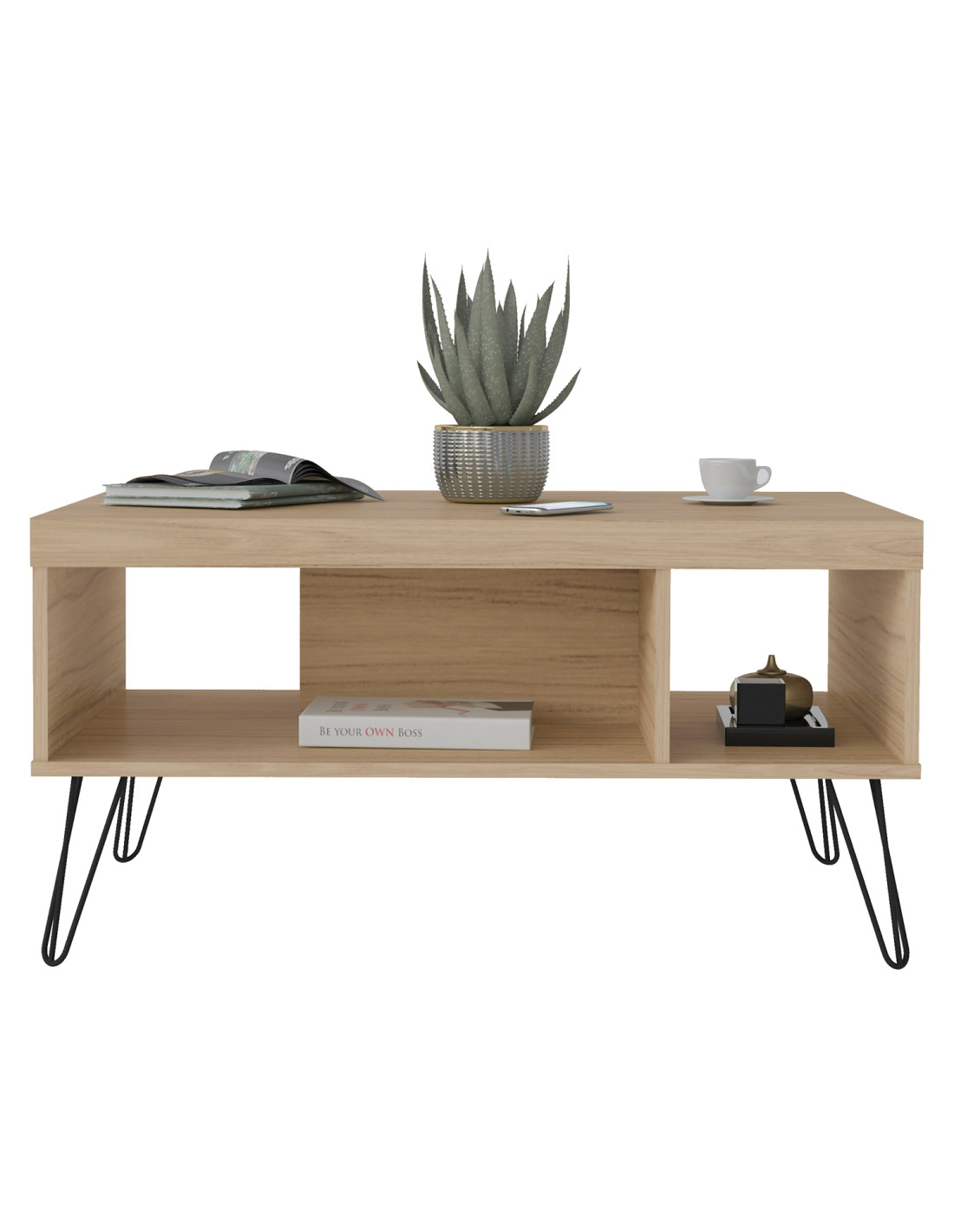 ¡Los muebles de estilo industrial son una tendencia encantadora que aporta mucha personalidad y transforma cualquier hogar! La característica más destacada de la Mesa de Centro Liberty son sus patas metálicas, conocidas como Hairpin Legs, populares en los años 40 por su diseño llamativo y hermoso, que hoy en día añaden un toque retro al entorno. La gruesa tapa de Tamburato enriquece el producto, haciéndolo más imponente y elegante. Además de ser decorativa, esta mesa es una solución inteligente de almacenamiento, ideal para guardar libros y objetos de manera organizada y hermosa. ¡Descubre la modernidad que solo la Mesa de Centro Liberty puede ofrecer a tu hogar!
