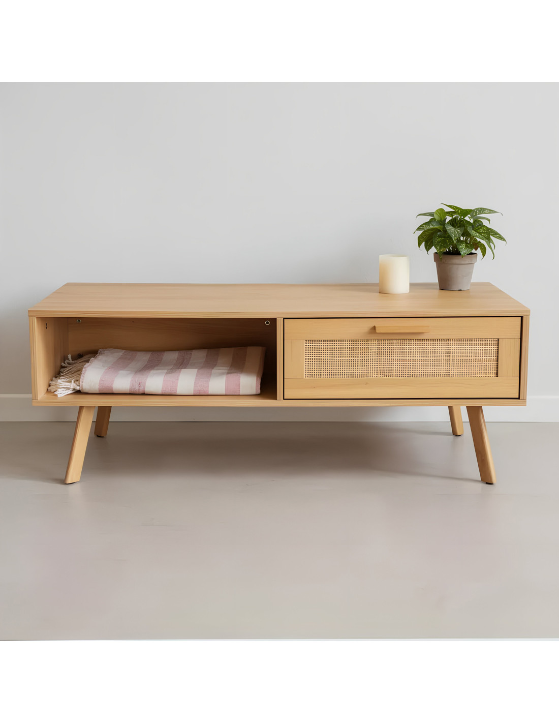 La Mesa de Centro Olivia es el complemento ideal para un living moderno y bien equilibrado. Su diseño de líneas limpias aporta armonía visual, mientras su superficie de melamina resistente ofrece un acabado elegante, fácil de limpiar y perfecto para el uso diario.