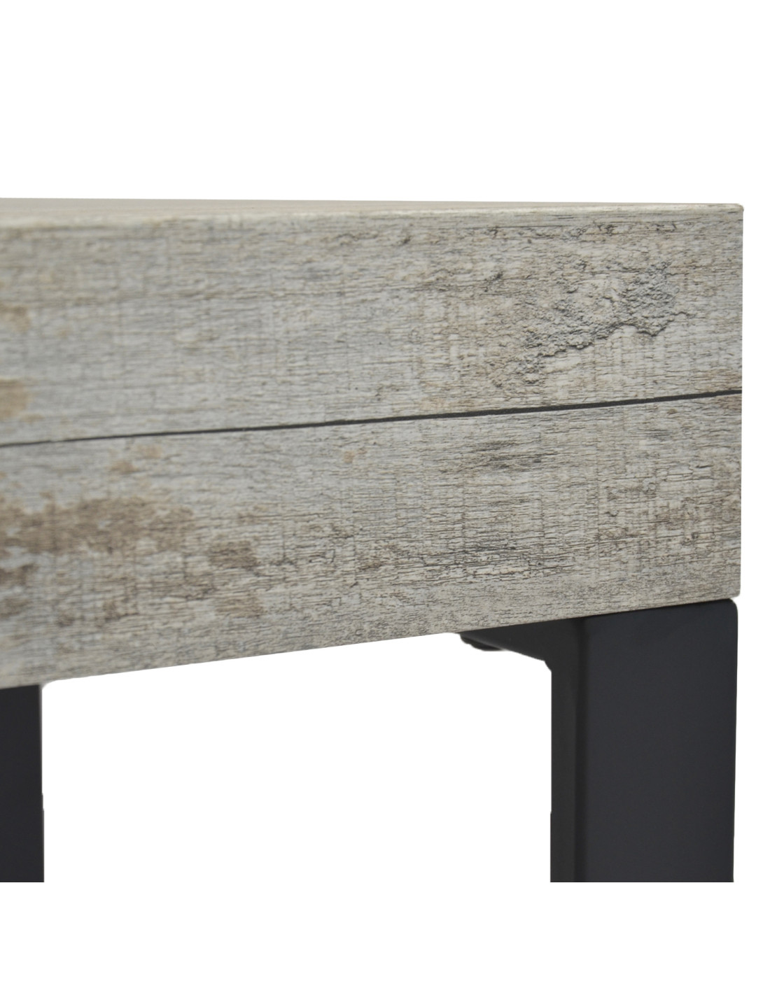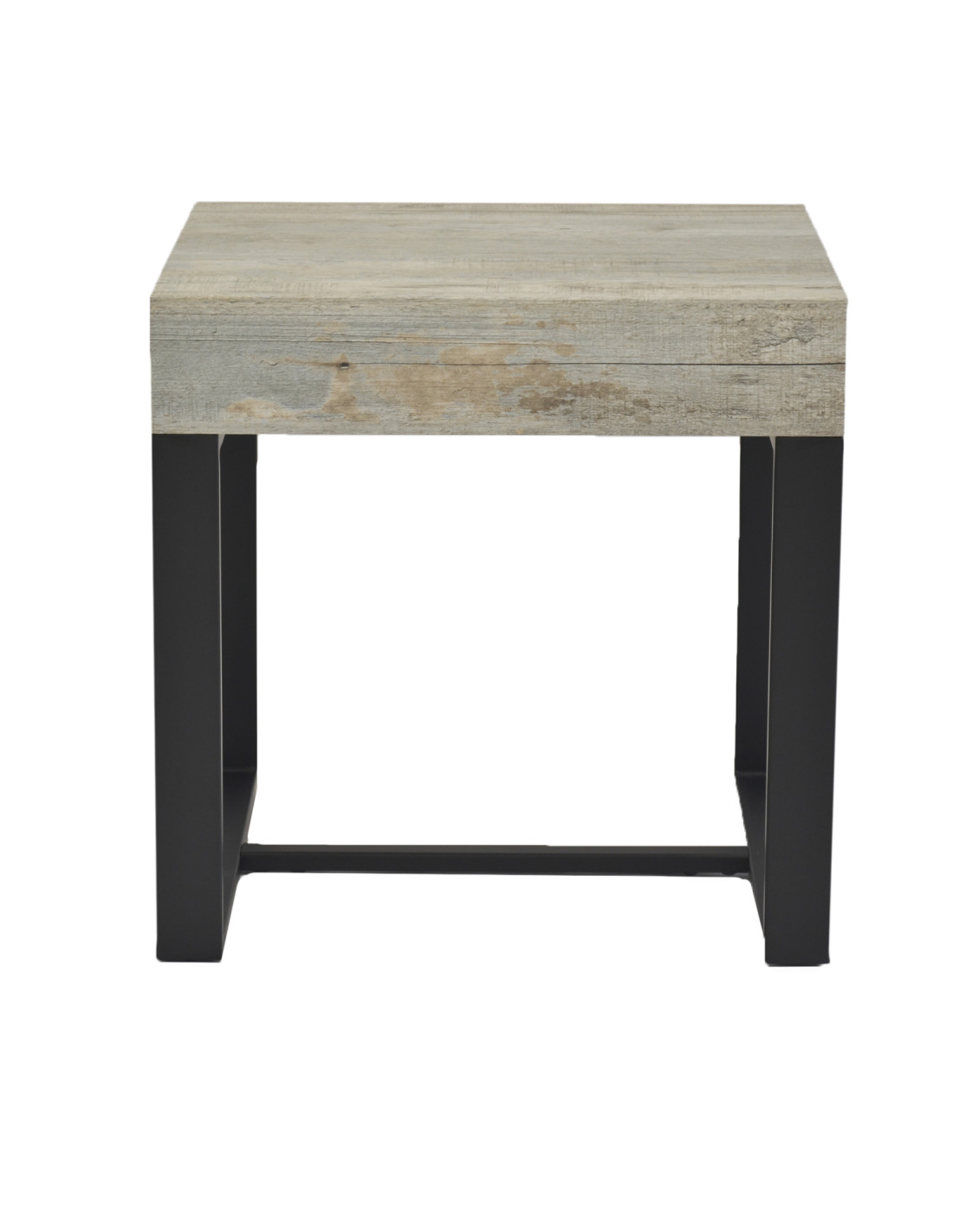 La Mesa Lateral Anotr se distingue por su cubierta de MDF (Fibra de densidad media), que no solo es resistente, sino que también aporta un toque de sofisticación con su apariencia de madera antigua. Este diseño rústico se complementa perfectamente con la estructura moderna de los tubos de metal proporcionando una base sólida y estable. El acabado de la mesa ofrece un aspecto vintage que añade carácter y encanto a cualquier rincón de tu hogar. La combinación de MDF y metal no solo garantiza una construcción duradera, sino que también facilita el mantenimiento, asegurando que la mesa se mantenga en excelentes condiciones durante muchos años.