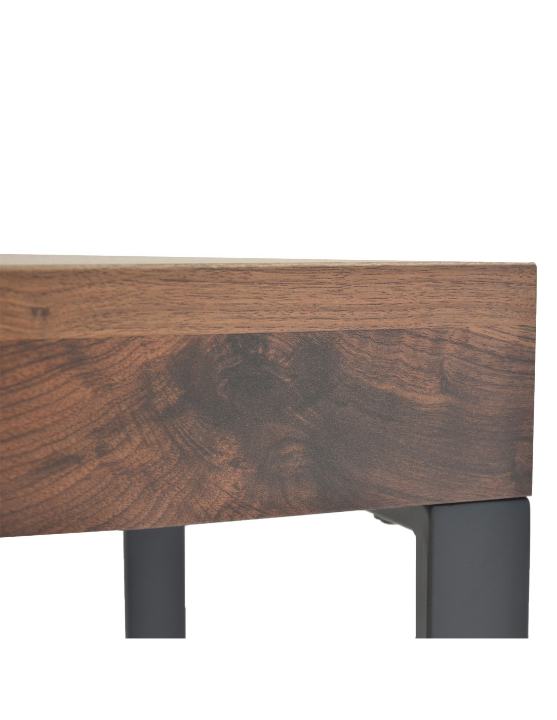 La Mesa Lateral Anotr se distingue por su cubierta de MDF (Fibra de densidad media), que no solo es resistente, sino que también aporta un toque de sofisticación con su apariencia de madera antigua. Este diseño rústico se complementa perfectamente con la estructura moderna de los tubos de metal proporcionando una base sólida y estable. El acabado de la mesa ofrece un aspecto vintage que añade carácter y encanto a cualquier rincón de tu hogar. La combinación de MDF y metal no solo garantiza una construcción duradera, sino que también facilita el mantenimiento, asegurando que la mesa se mantenga en excelentes condiciones durante muchos años.