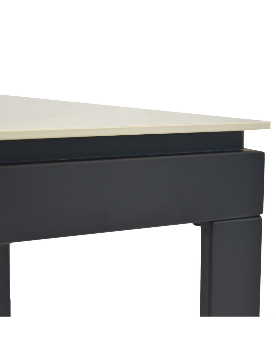La Mesa Lateral Cloonee se distingue por su cubierta de piedra sinterizada, que no solo es resistente sino también estéticamente agradable. Este material ofrece una superficie elegante y fácil de mantener, ideal para el uso diario. Los tubos de metal, con un tamaño de 1,5 x 5 cm, proporcionan una estructura robusta y estable, asegurando que la mesa mantenga su integridad y estilo durante muchos años. El diseño moderno de la Mesa Lateral Cloonee la convierte en una pieza versátil que puede complementar una variedad de decoraciones interiores.