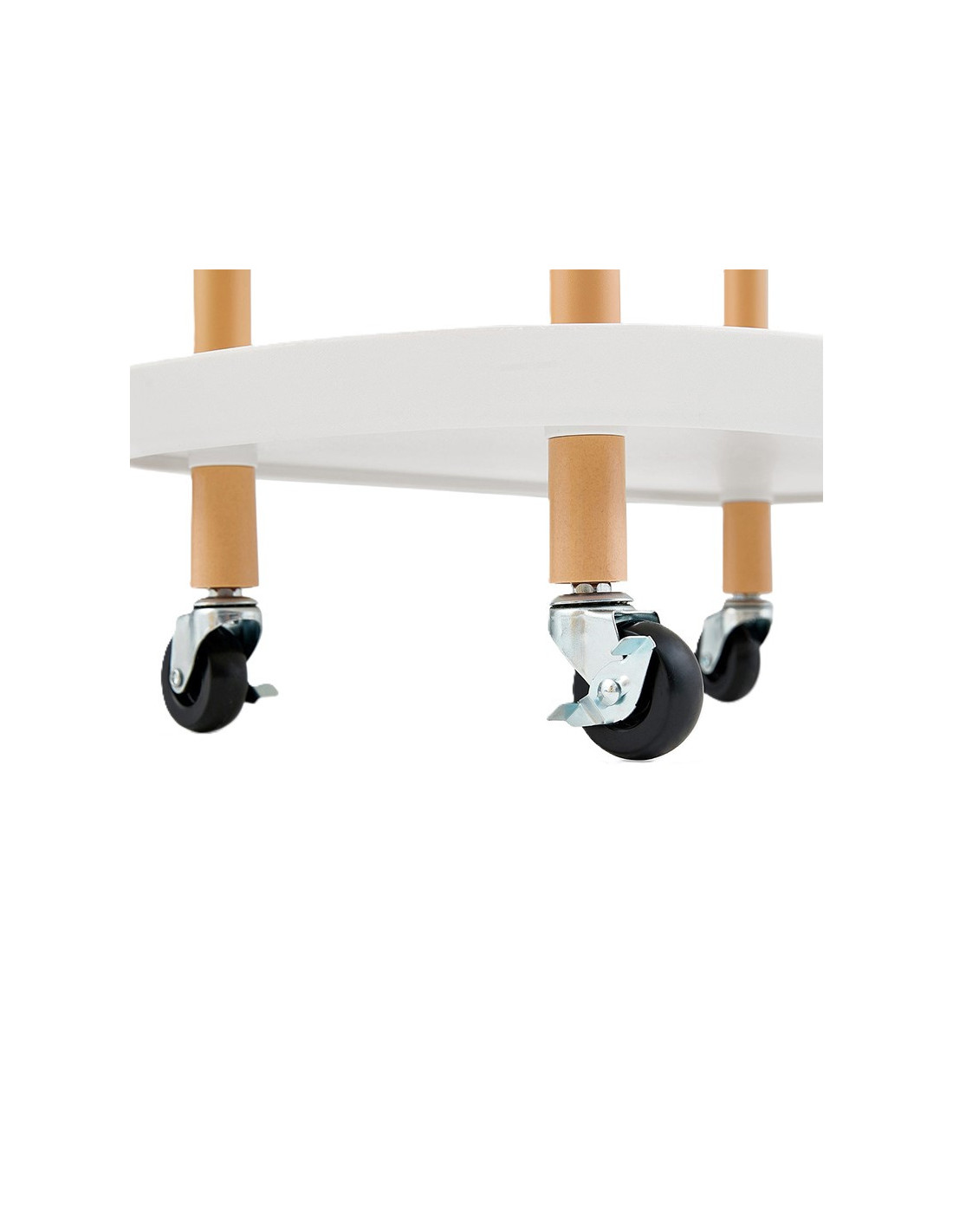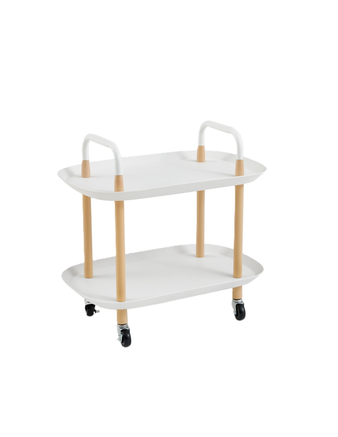 Versátil y funcional, la mesa lateral de 2 niveles combina diseño moderno con una practicidad inigualable. Su estructura de metal con efecto madera le da un toque cálido y sofisticado, mientras que sus estantes rectangulares ofrecen resistencia y estilo. Equipada con cuatro ruedas y manillas laterales prácticas, se desliza con facilidad para adaptarse a cualquier espacio. Perfecta para todo tipo de habitación y decoración, su estilo nórdico aporta elegancia sin esfuerzo, convirtiéndola en un imprescindible del hogar.