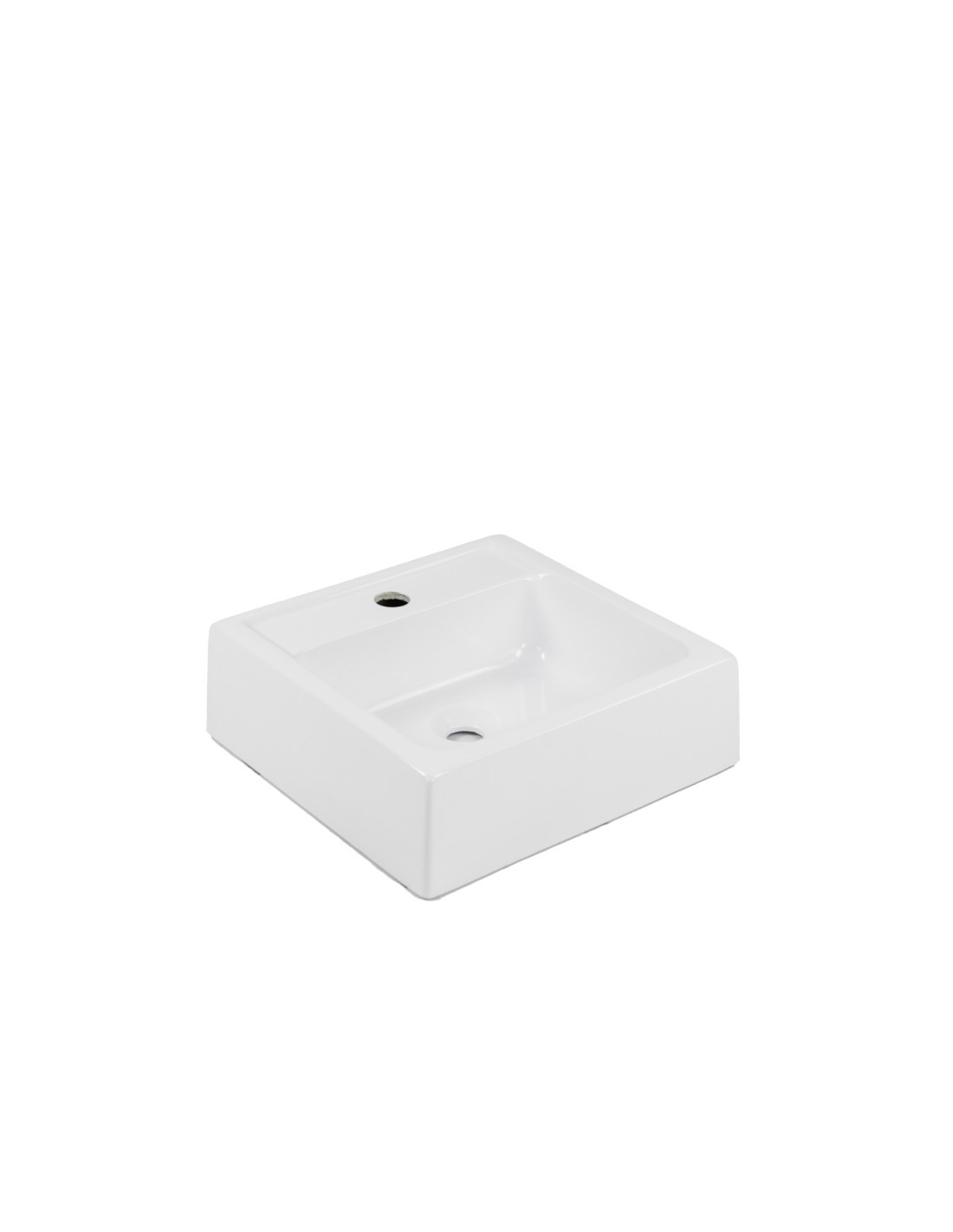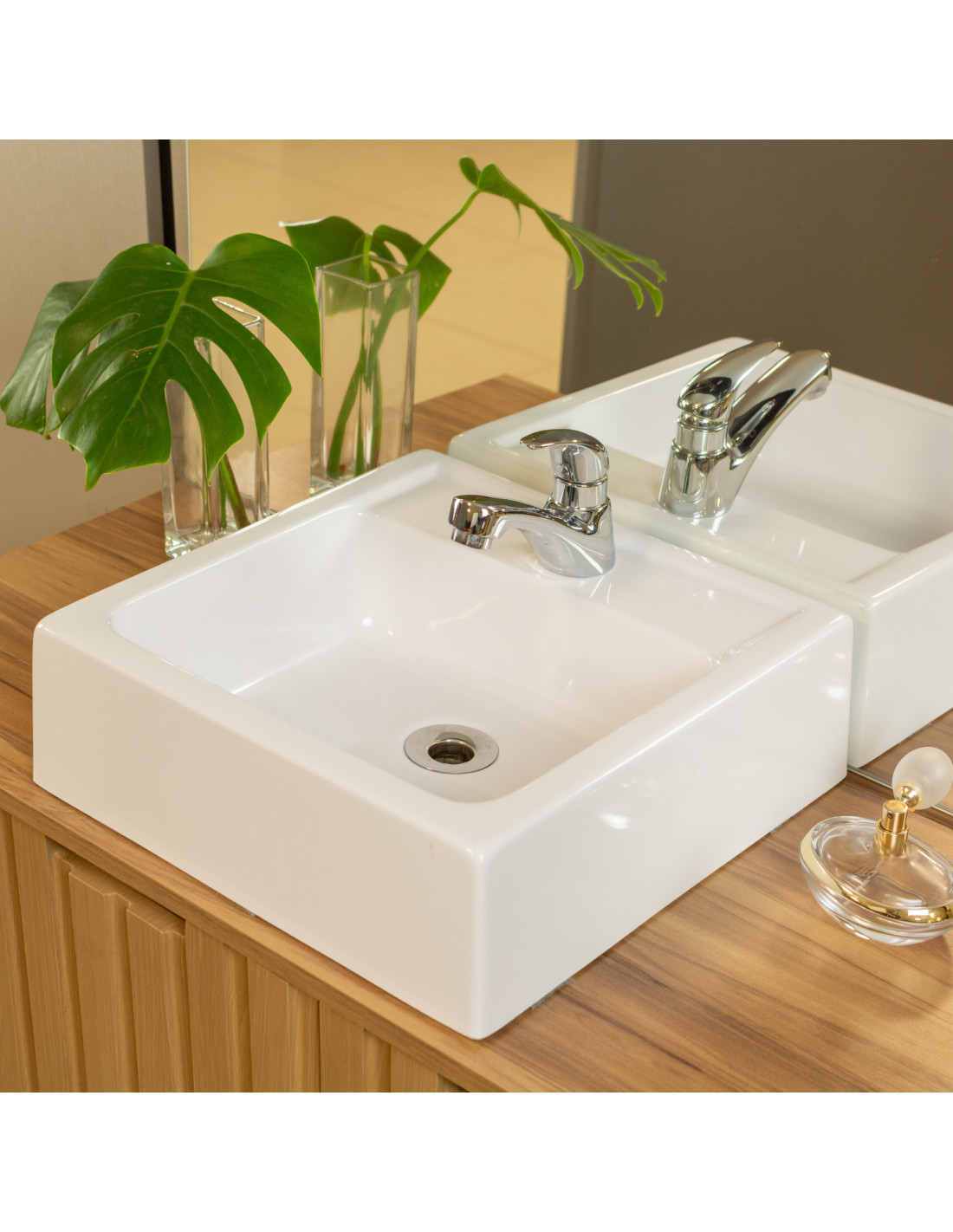 Lavamanos moderno de líneas suaves y acabado brillante que aporta elegancia y frescura al baño.