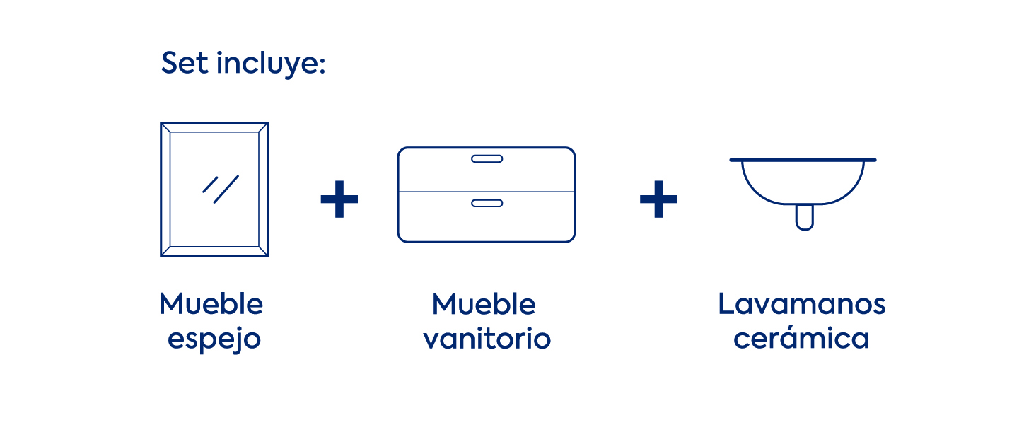 Incluye lavamanos y espejo, creando un conjunto completo que aporta cohesión visual y facilita tu rutina diaria. Es ideal para quienes buscan renovar su baño sin grandes intervenciones, logrando un ambiente fresco, práctico y acogedor desde el primer momento.