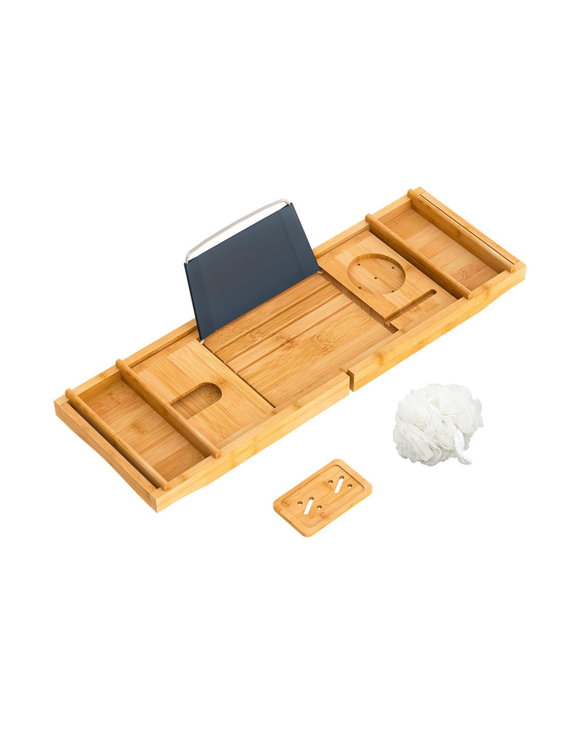 La bandeja extensible para bañera de bambú fusiona bienestar y diseño natural. Su estructura ajustable se adapta a distintos tamaños de tina, ofreciendo un soporte ideal para libros, velas o copas. Fabricada en bambú resistente al agua, combina durabilidad y estética orgánica, aportando una sensación de spa en casa. Su tono cálido y textura natural convierten cada baño en un momento de desconexión y placer visual. Una pieza esencial para quienes disfrutan del confort cotidiano con estilo sostenible.