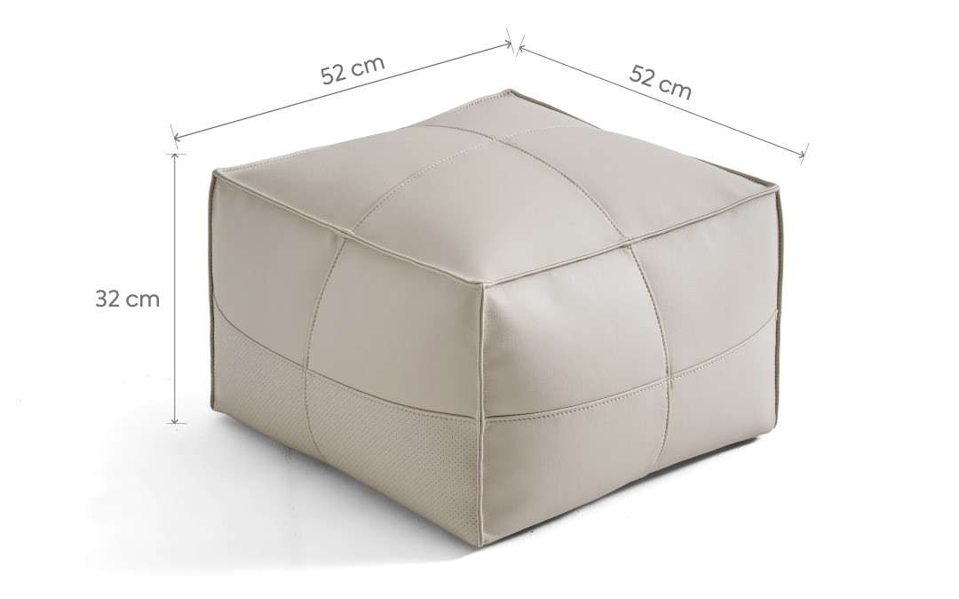 Pouf Kumo beige con tapiz en ecocuero — diseño moderno, cómodo y fácil de mantener. Ideal para living o dormitorio como asiento adicional o apoyo para tus momentos de descanso.