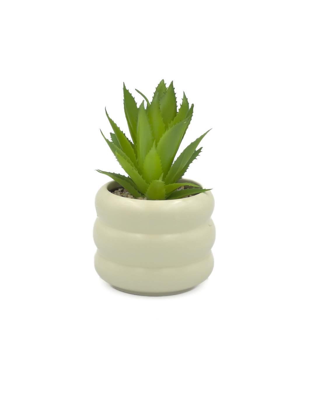 Suculenta decorativa 18 cm con base Michelin, ideal para ambientar con estilo moderno.