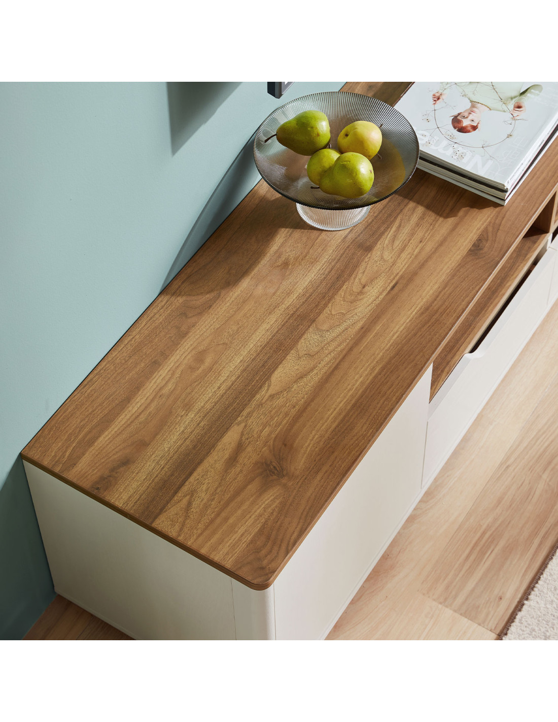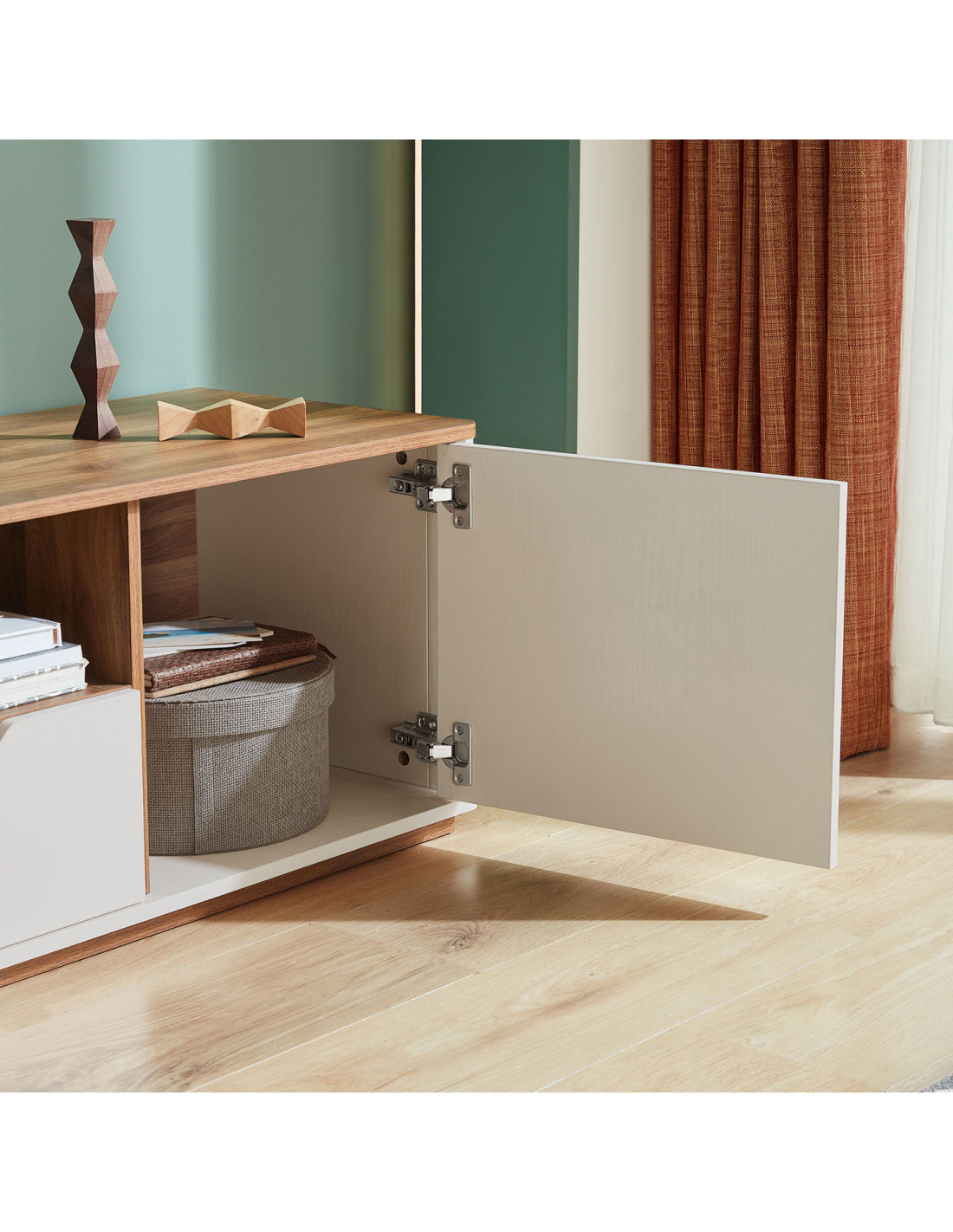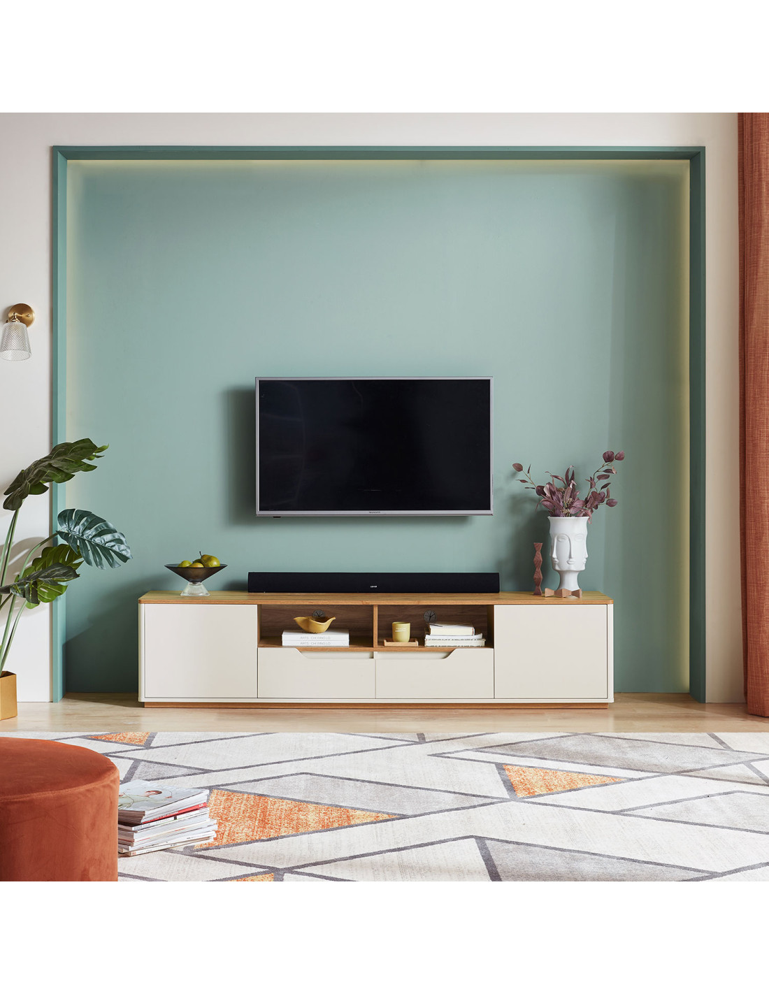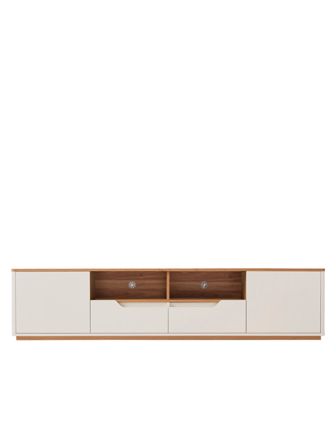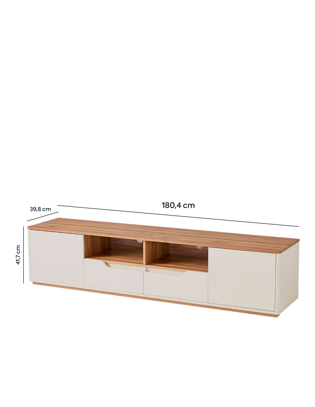 El Rack TV Soho destaca por su diseño contemporáneo y amplio espacio, perfecto para un hogar moderno.