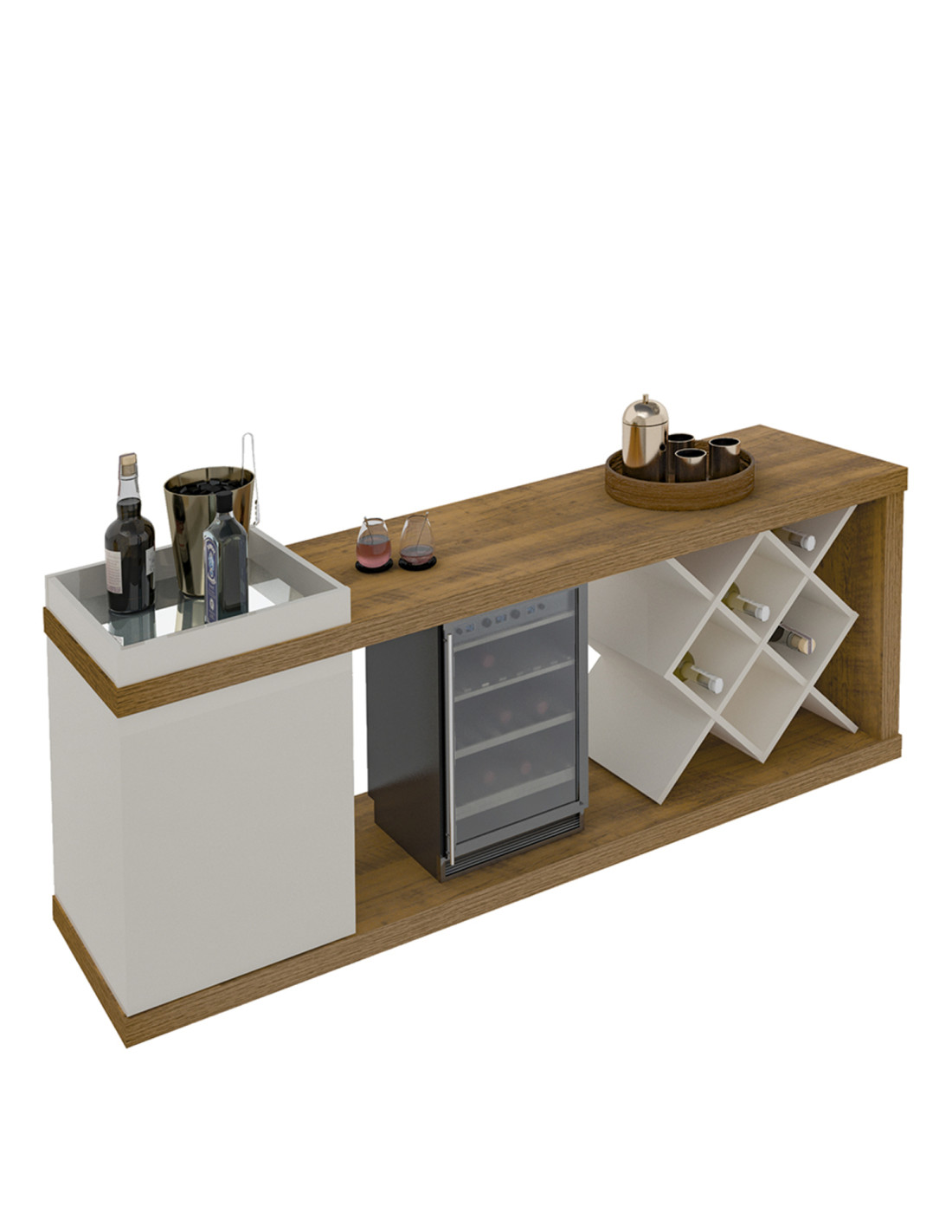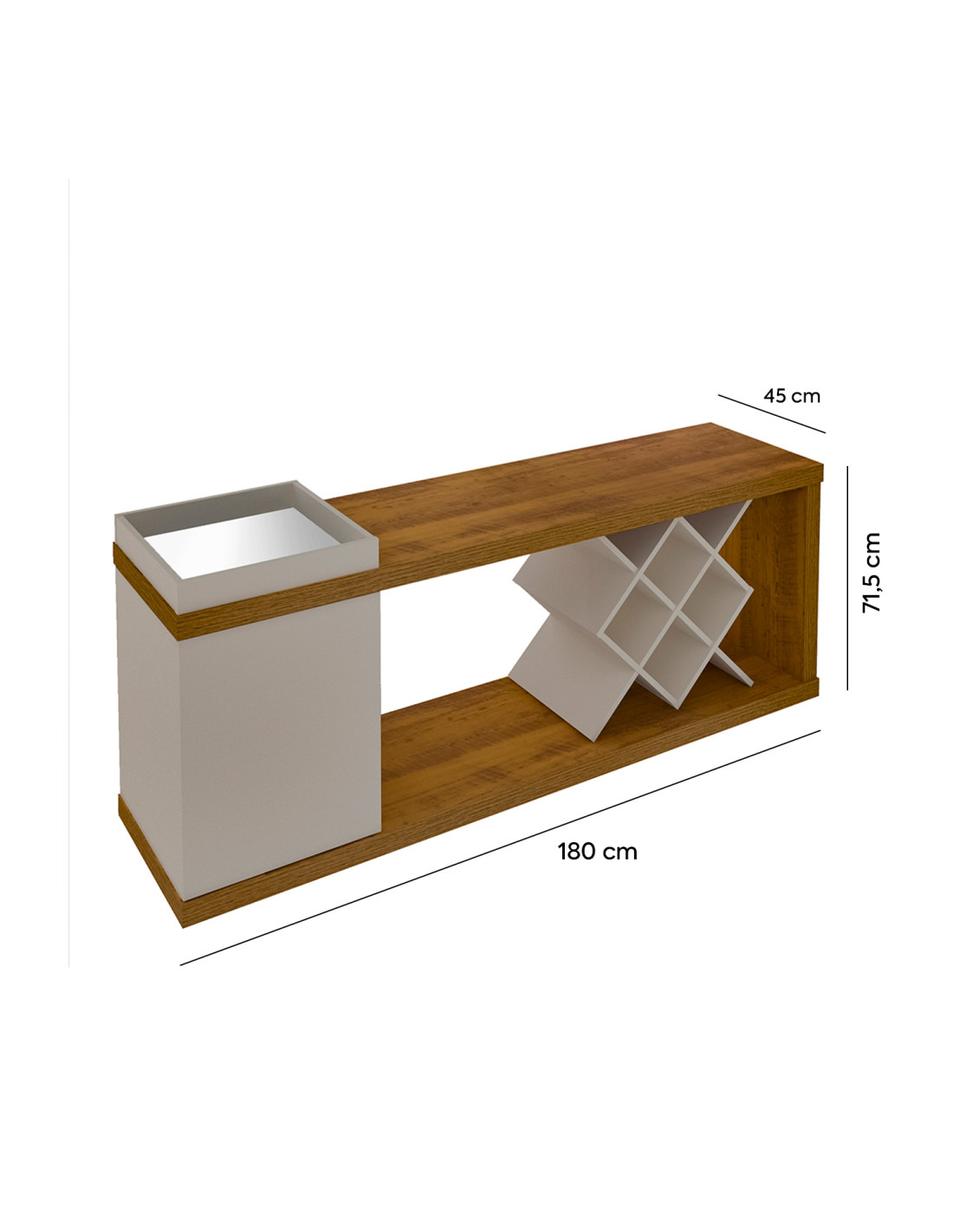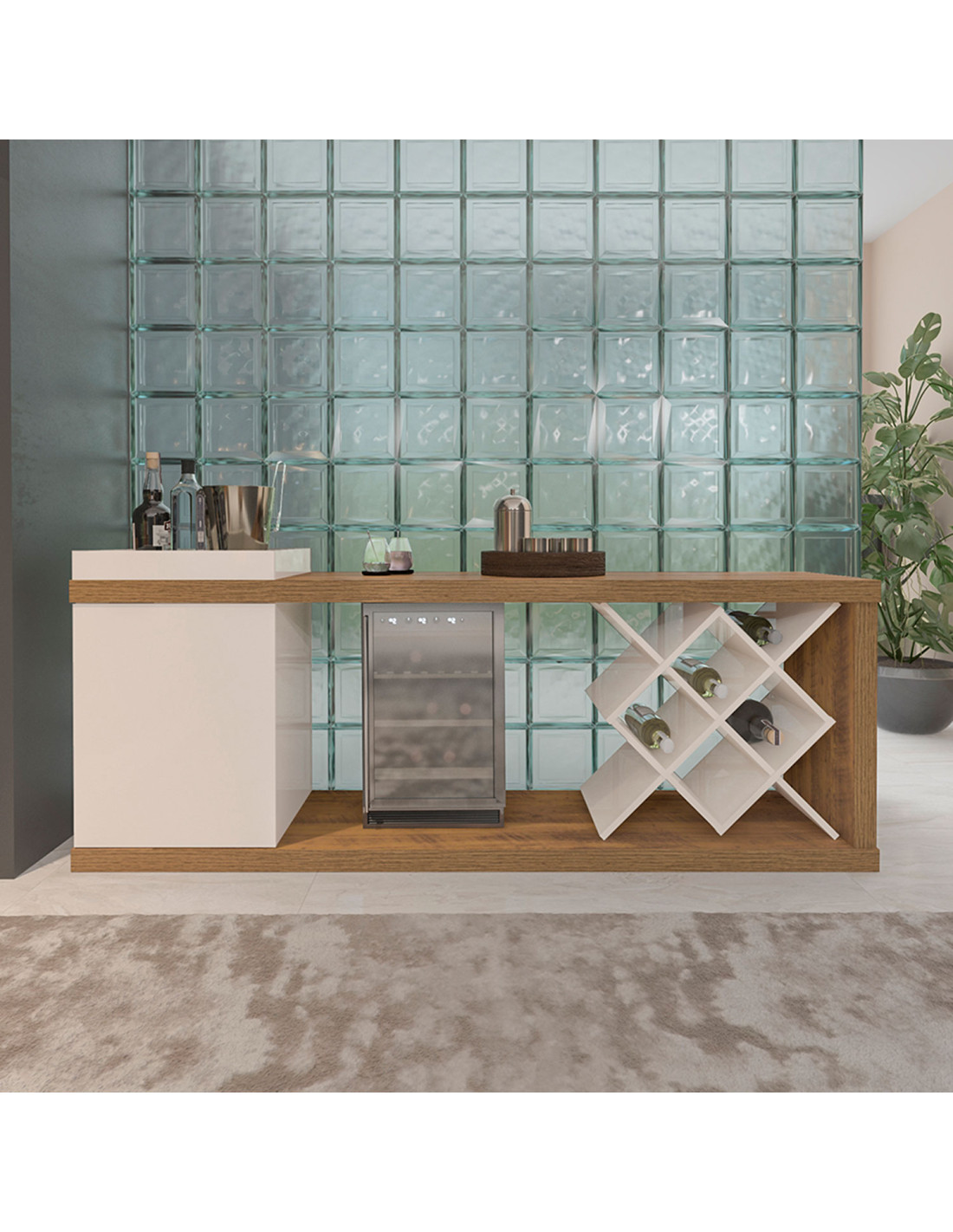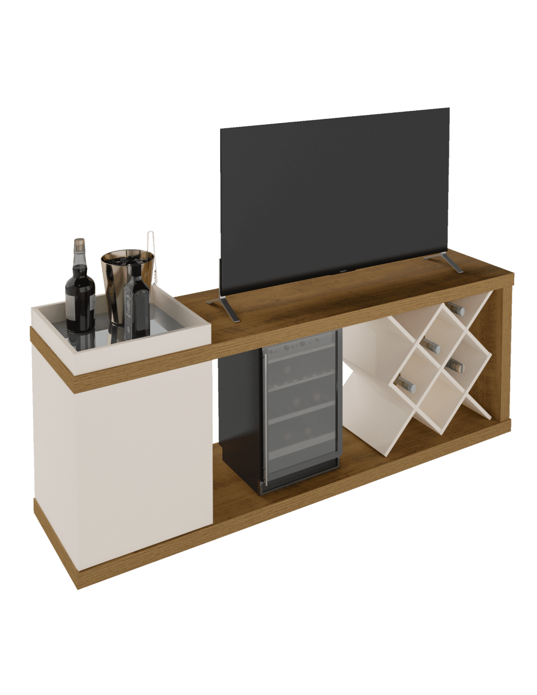 ¡El Rack Bar Madrid está diseñado para revolucionar los muebles funcionales! Mereces un espacio destacado en tu hogar, y este mueble puede servir como bar, vinoteca, consola o soporte para TV, ¡y hacerlo todo con estilo! Su bandeja con espejo acoplada a la tapa es perfecta para exhibir tu colección de bebidas y copas. El nicho cerrado con puerta ofrece espacio para almacenar botellas, vasos y mucho más. Además, su hermoso portabotellas tiene capacidad para muchas botellas y puede colocarse donde más te guste. Su estructura es muy resistente: hecho con el exclusivo Tamburato de 50 mm, el Rack Bar Madrid ha sido probado para soportar de forma segura un televisor de hasta 60 pulgadas. ¡Admira la belleza y funcionalidad del Rack Bar Madrid!
