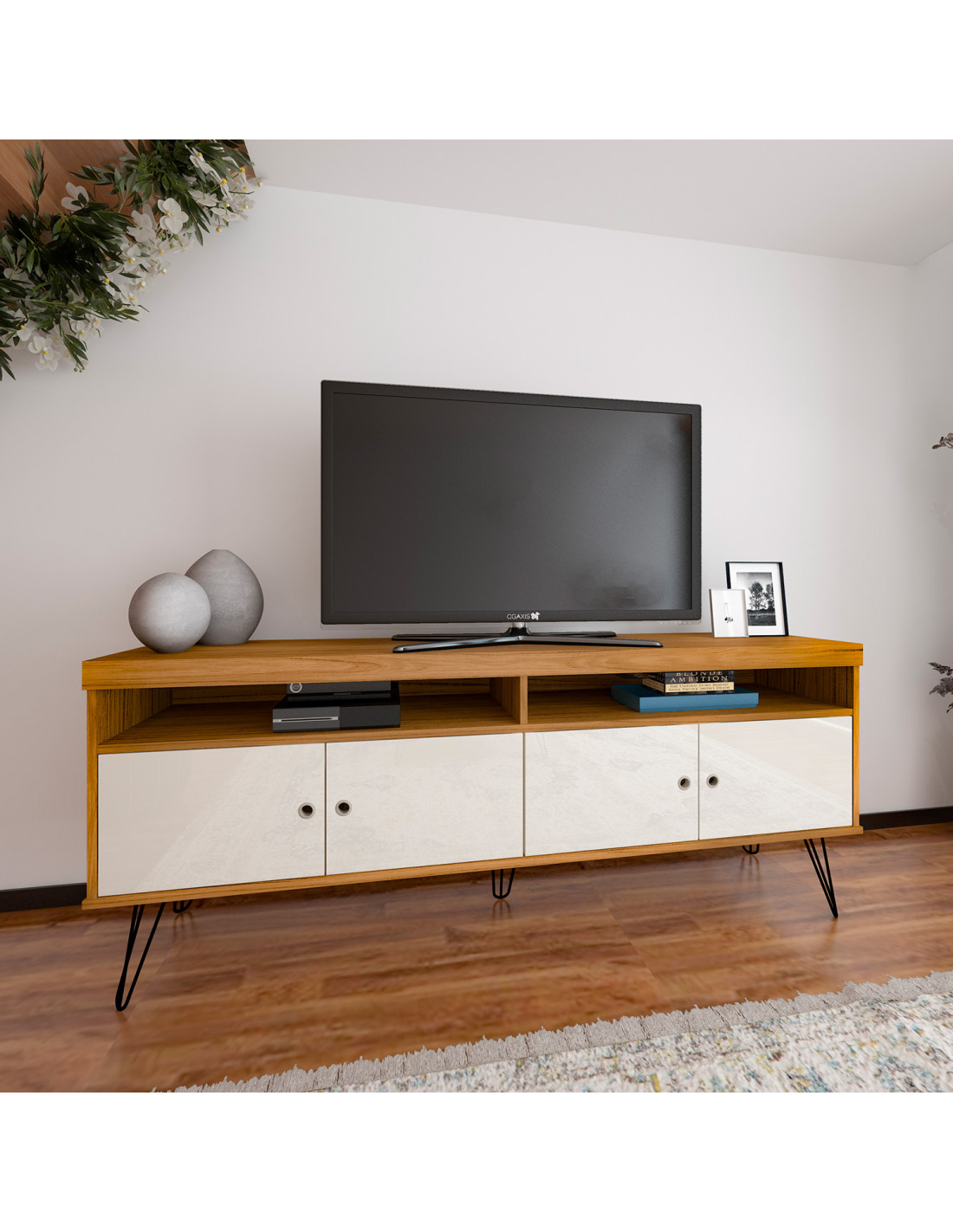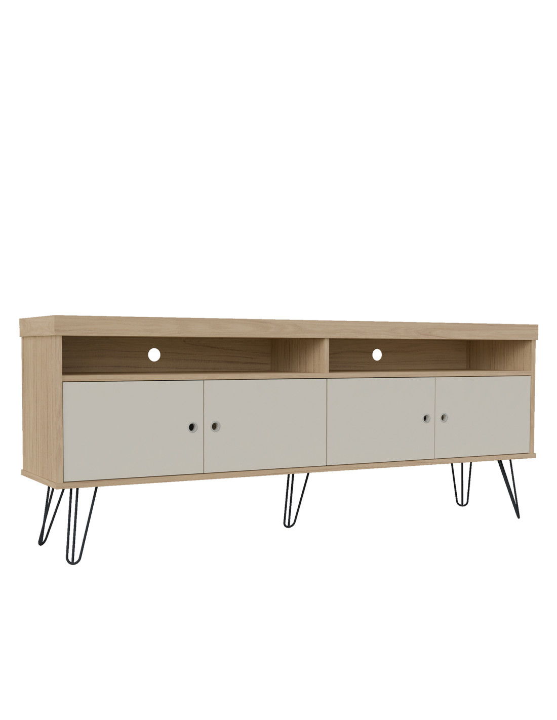 ¿Quieres transformar la apariencia de tu hogar? ¡Descubre el Rack Liberty, el mueble que combina belleza y funcionalidad! Las patas de horquilla metálicas aportan un encantador diseño vintage, añadiendo un toque retro a tu casa. Además, este producto ofrece una amplia superficie para el televisor y un gran espacio de almacenamiento para mantener el ambiente limpio y ordenado. El alto estándar de producción y las materias primas (MDP y Tamburato, certificados con FSC®) garantizan productos bellos, resistentes y de alta calidad.