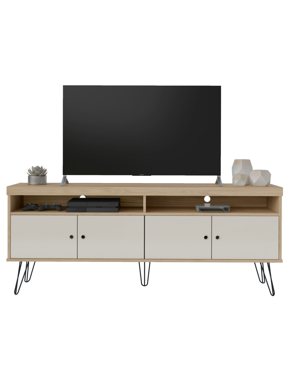 El Rack TV Liberty Café-Blanco ofrece contraste y estilo, ideal para quienes buscan un toque moderno y luminoso.