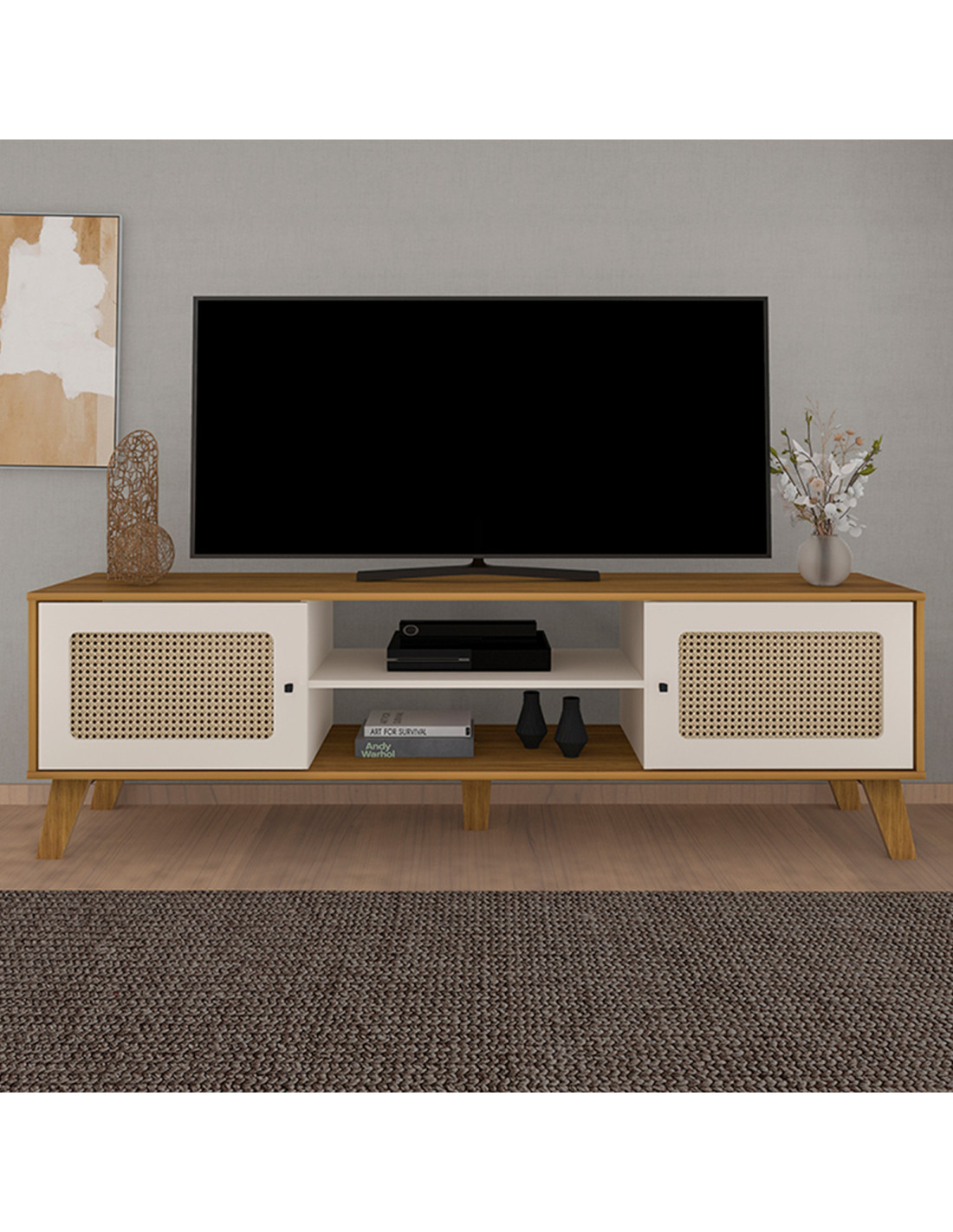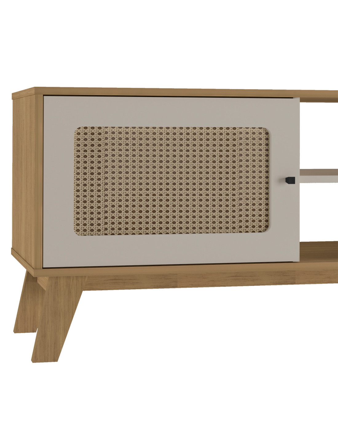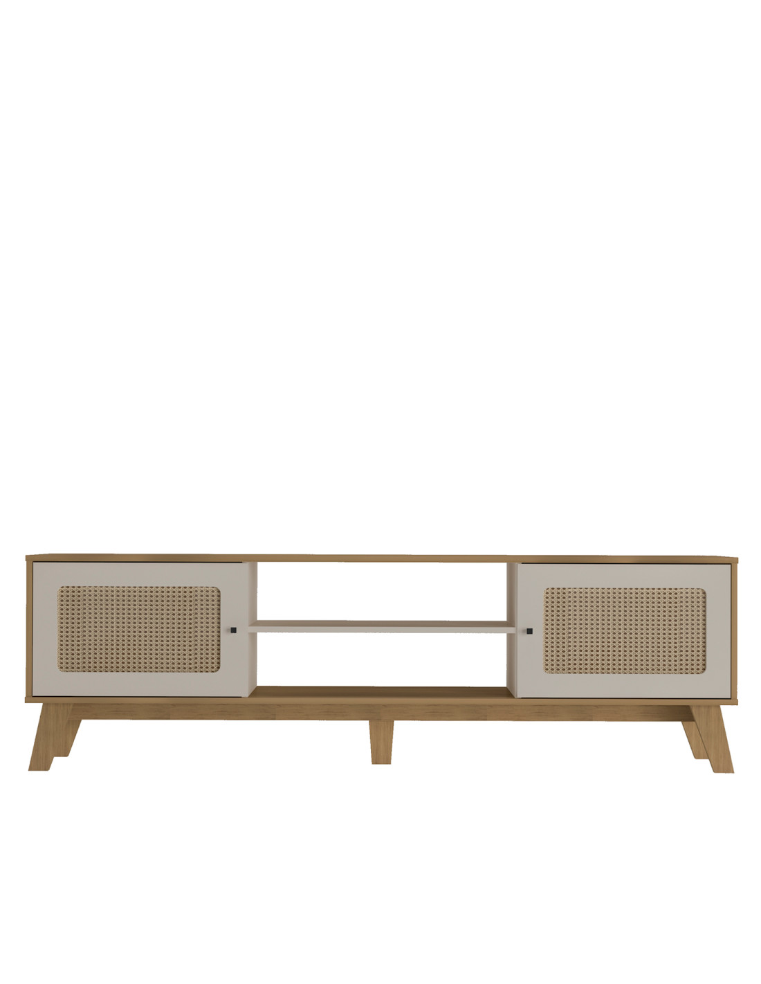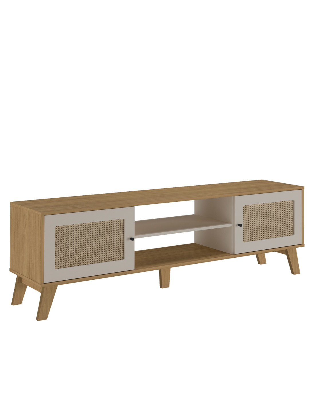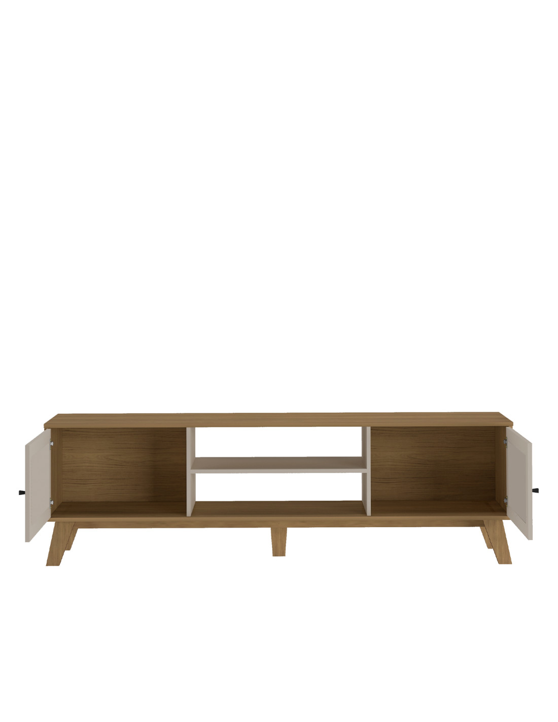 El Rack Charlotte Roble/Off White combina estilo natural y líneas suaves, ideal para un espacio contemporáneo.