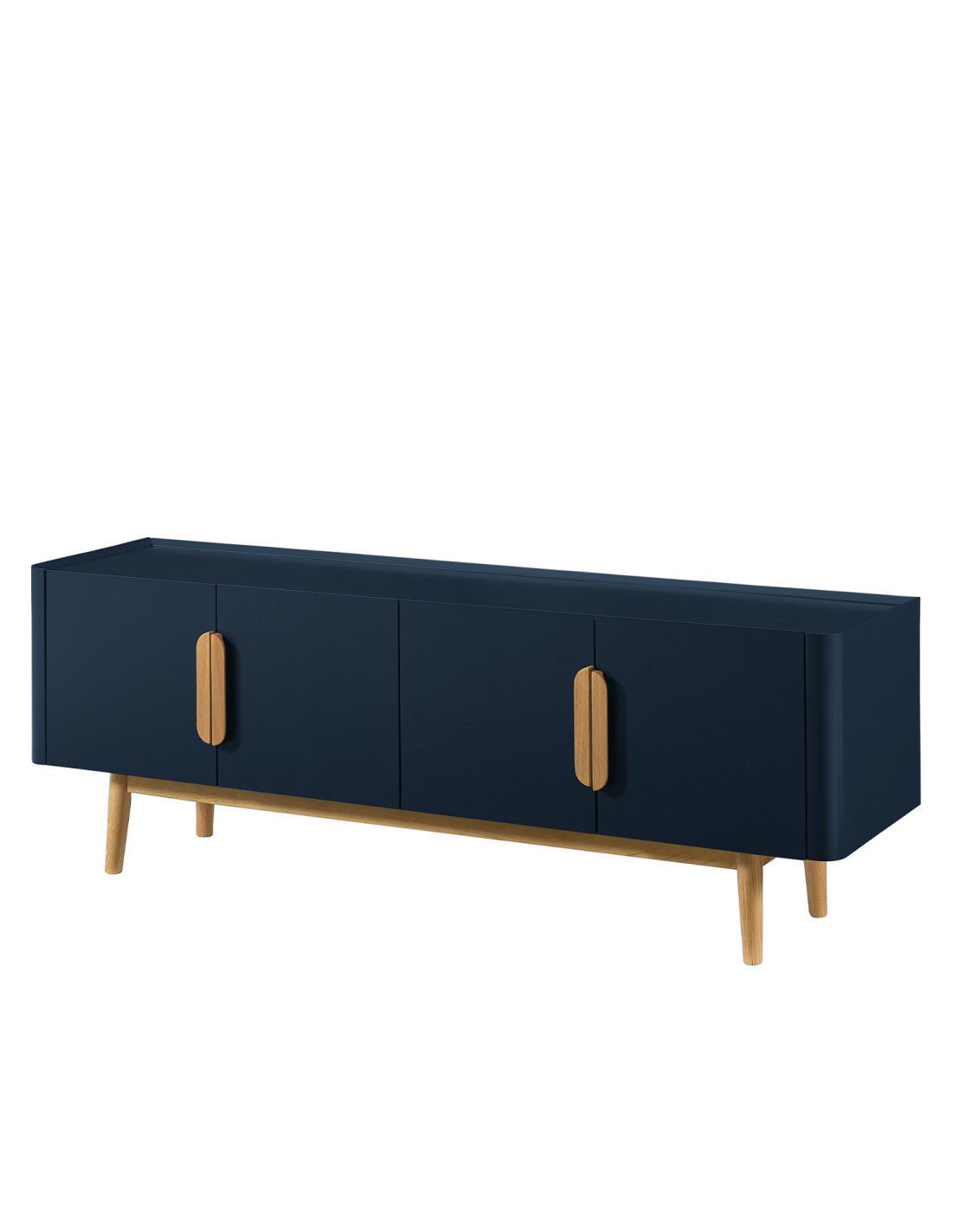 Transforme su espacio con el sofisticado Rack TV Dunelon de 4 puertas, una pieza que combina estilo y funcionalidad a la perfección. Este elegante rack de madera para TV, en un atractivo tono azul, aporta un toque de frescura y modernidad a su living. El rack de TV de 4 puertas Dunelon, ofrece un amplio almacenamiento para mantener sus dispositivos y accesorios organizados, mientras que su acabado rústico añade un carácter único a su decoración. Con el Rack TV Dunelon, cada detalle de su hogar refleja una armonía entre la innovación y la comodidad, creando un ambiente acogedor y estilizado.