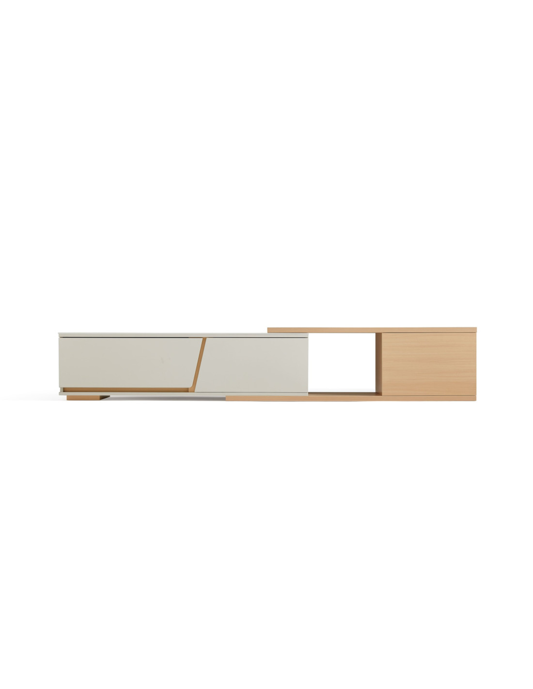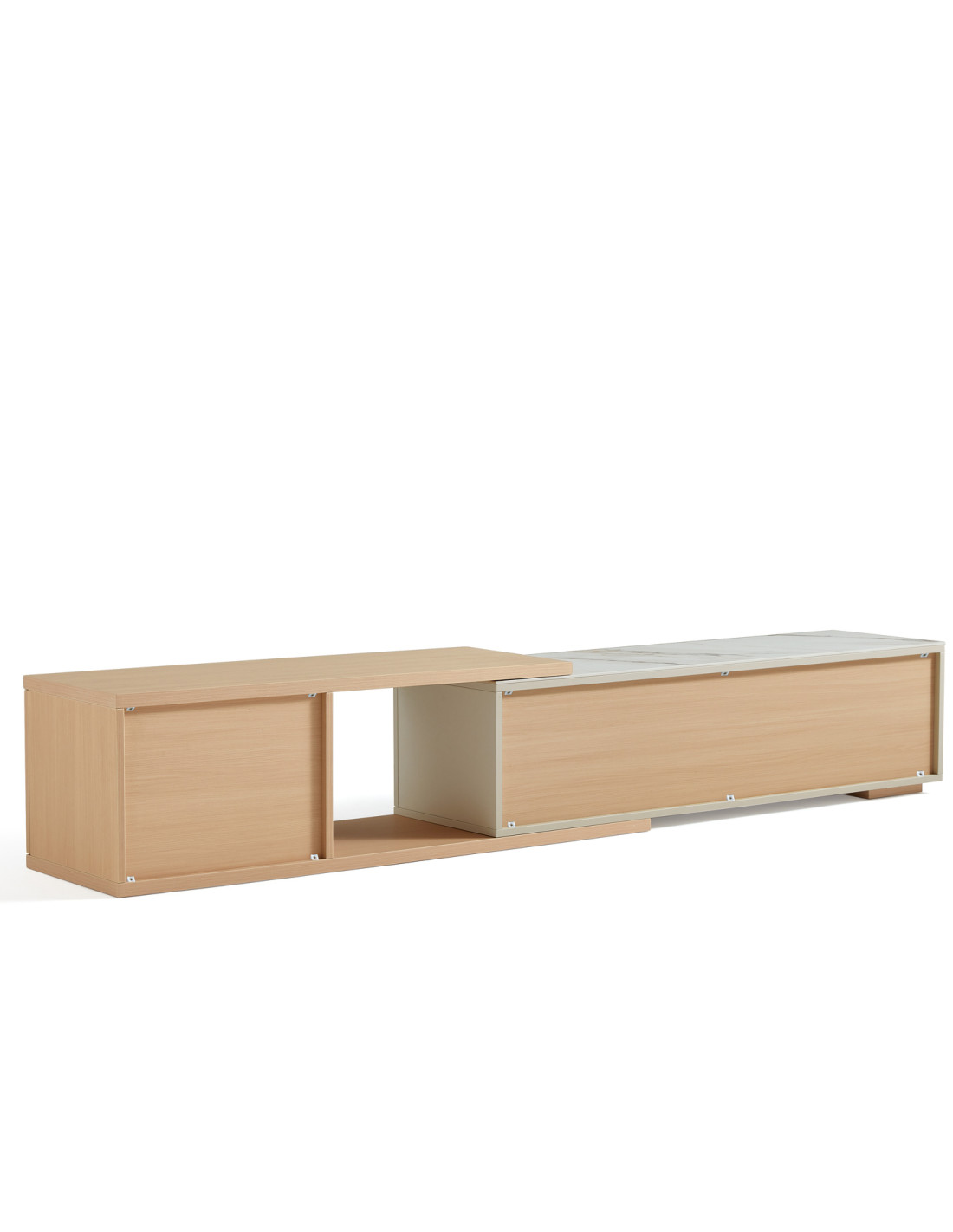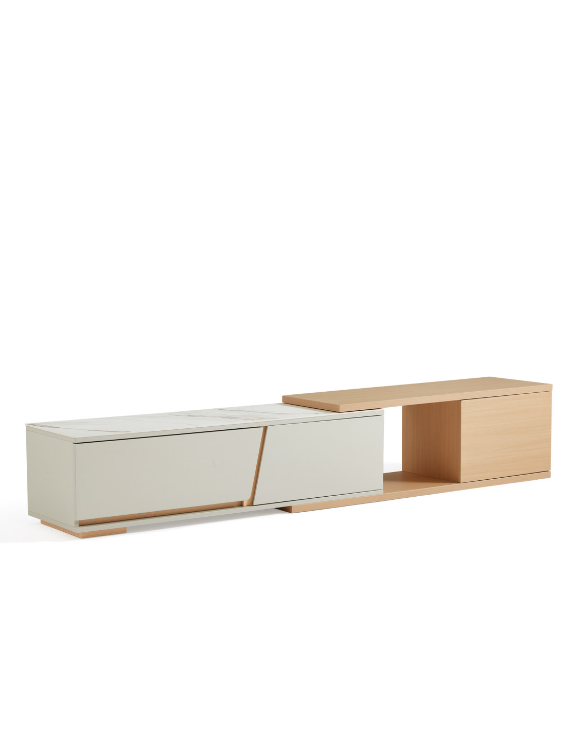 Descubre el elegante Rack TV Marcel, diseñado para adaptarse a tus necesidades con estilo y funcionalidad. Su innovador tablero extensible se despliega sin esfuerzo, ofreciendo una superficie adicional perfecta para acomodar un televisor más grande, exhibir tus objetos decorativos favoritos o crear un práctico espacio de trabajo temporal. Este versátil mueble destaca por su mecanismo de extensión sin juntas, que garantiza un funcionamiento suave y sin complicaciones, brindando una experiencia de uso cómoda y sin interrupciones.