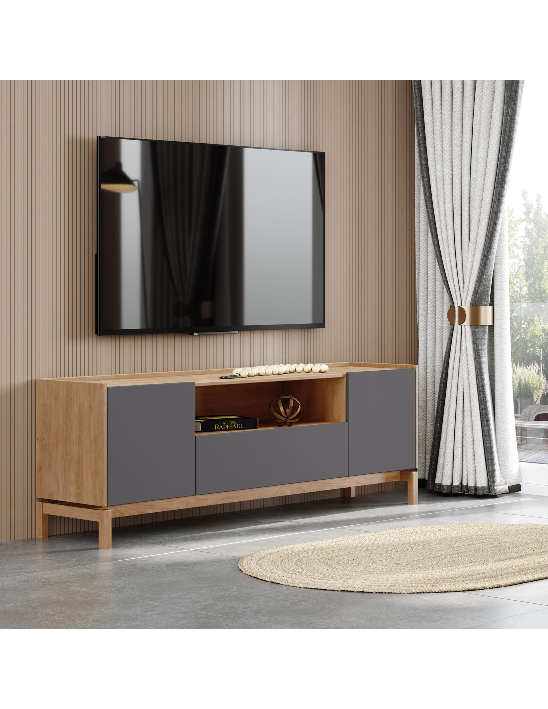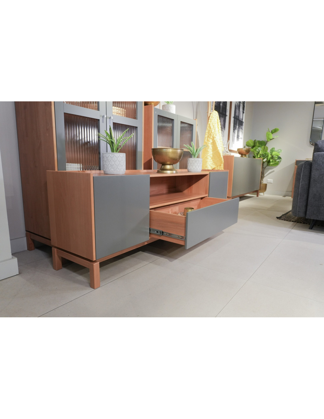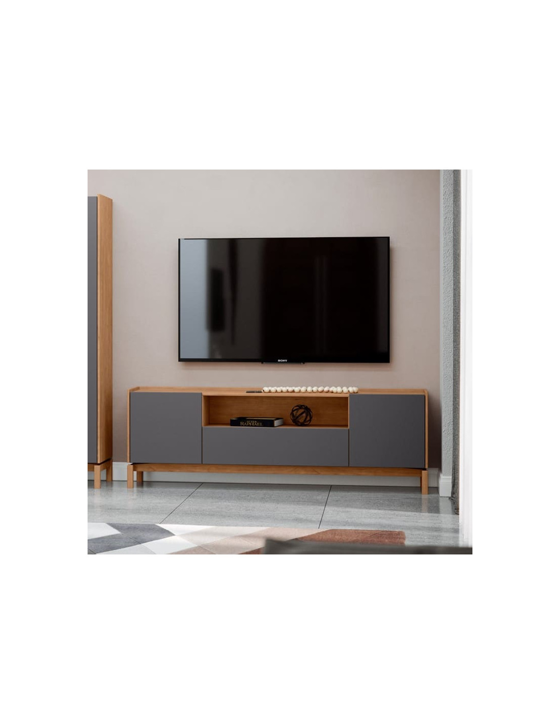 El Rack Barcelona combina líneas limpias y acabados cálidos, ideal para un living moderno y ordenado.