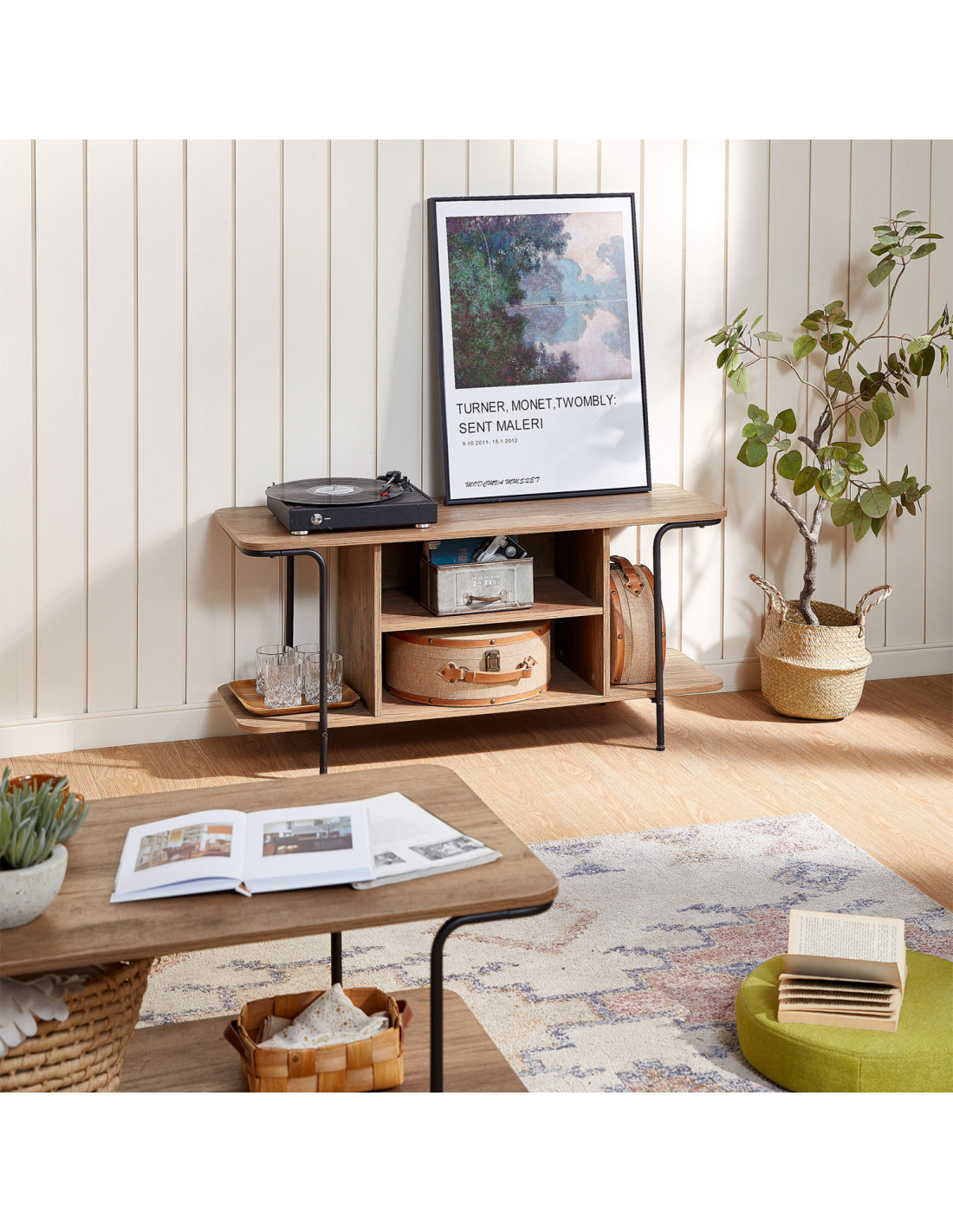 El Rack TV Phillip combina estructura sólida y estilo contemporáneo, ideal para un living moderno y armonioso.