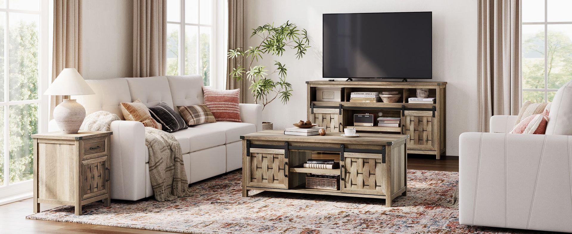 Descripción: La mesa de centro Vinh café combina un diseño rústico con toques modernos, convirtiéndose en el punto focal de tu sala de estar. Su acabado en madera con patrones entretejidos y detalles metálicos en los bordes aportan carácter y calidez. Las dos puertas correderas permiten un acceso fácil a los compartimentos, cada uno con estantes ajustables para adaptarse a tus necesidades. Los orificios para cables mantienen el orden, mientras los niveladores ajustables aseguran estabilidad en cualquier superficie. Fabricada con tablero de partículas P2 y MDF laminado, esta mesa ofrece una robustez excepcional. |