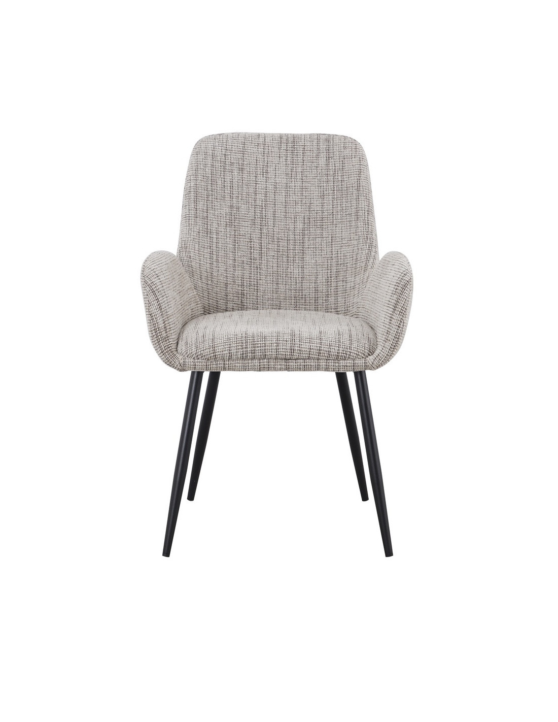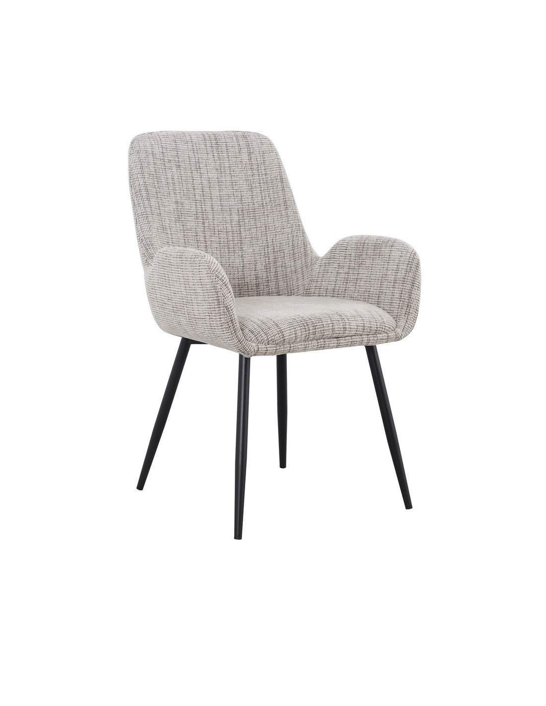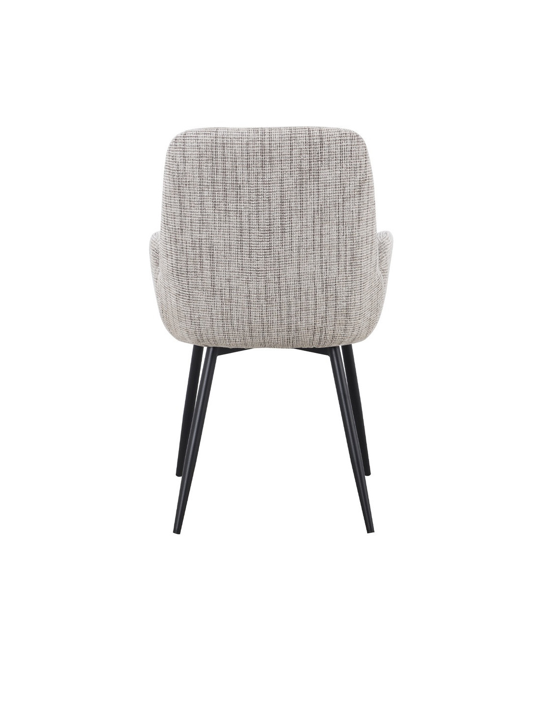 Silla de comedor con estructura de madera contrachapada y patas de metal. Asiento con espuma y respaldo acolchado para mayor comodidad y soporte.