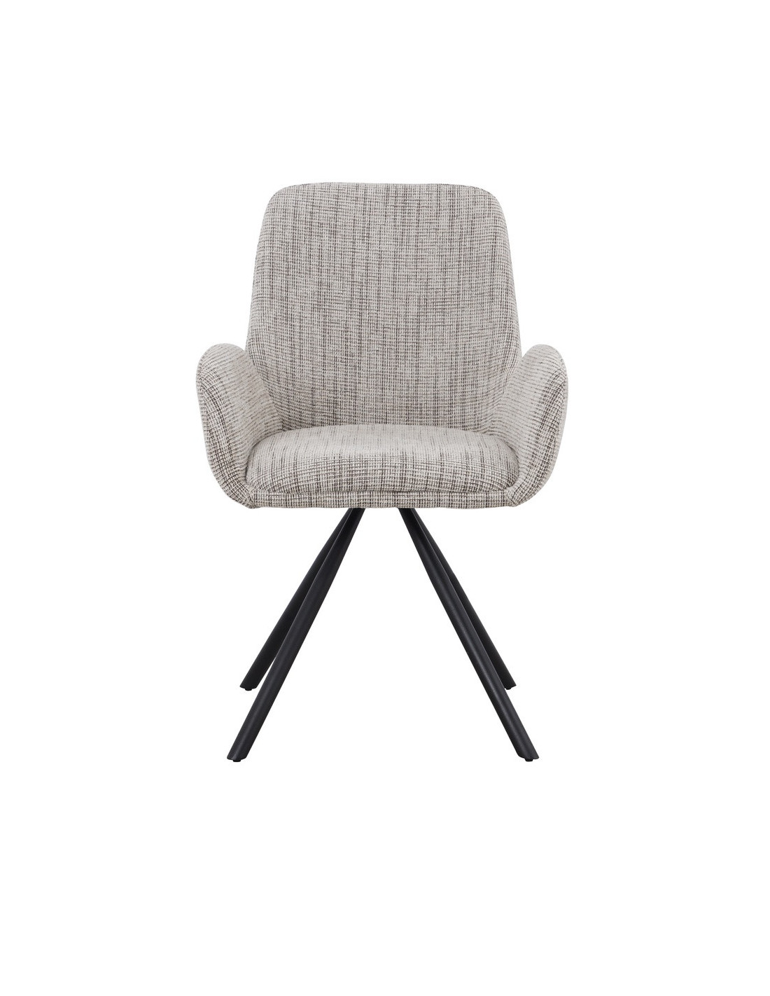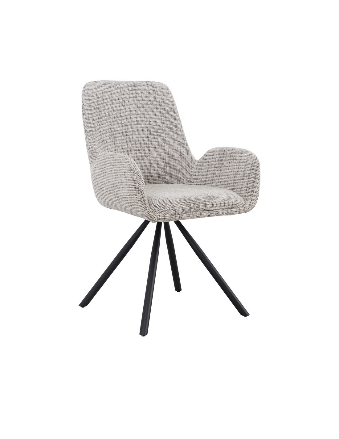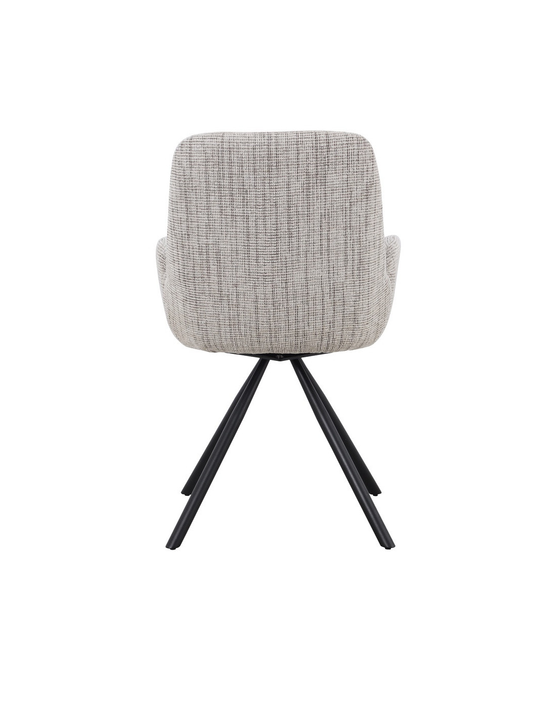 Silla de comedor con estructura de madera contrachapada y patas de metal. Asiento con espuma y respaldo acolchado para mayor confort y soporte.