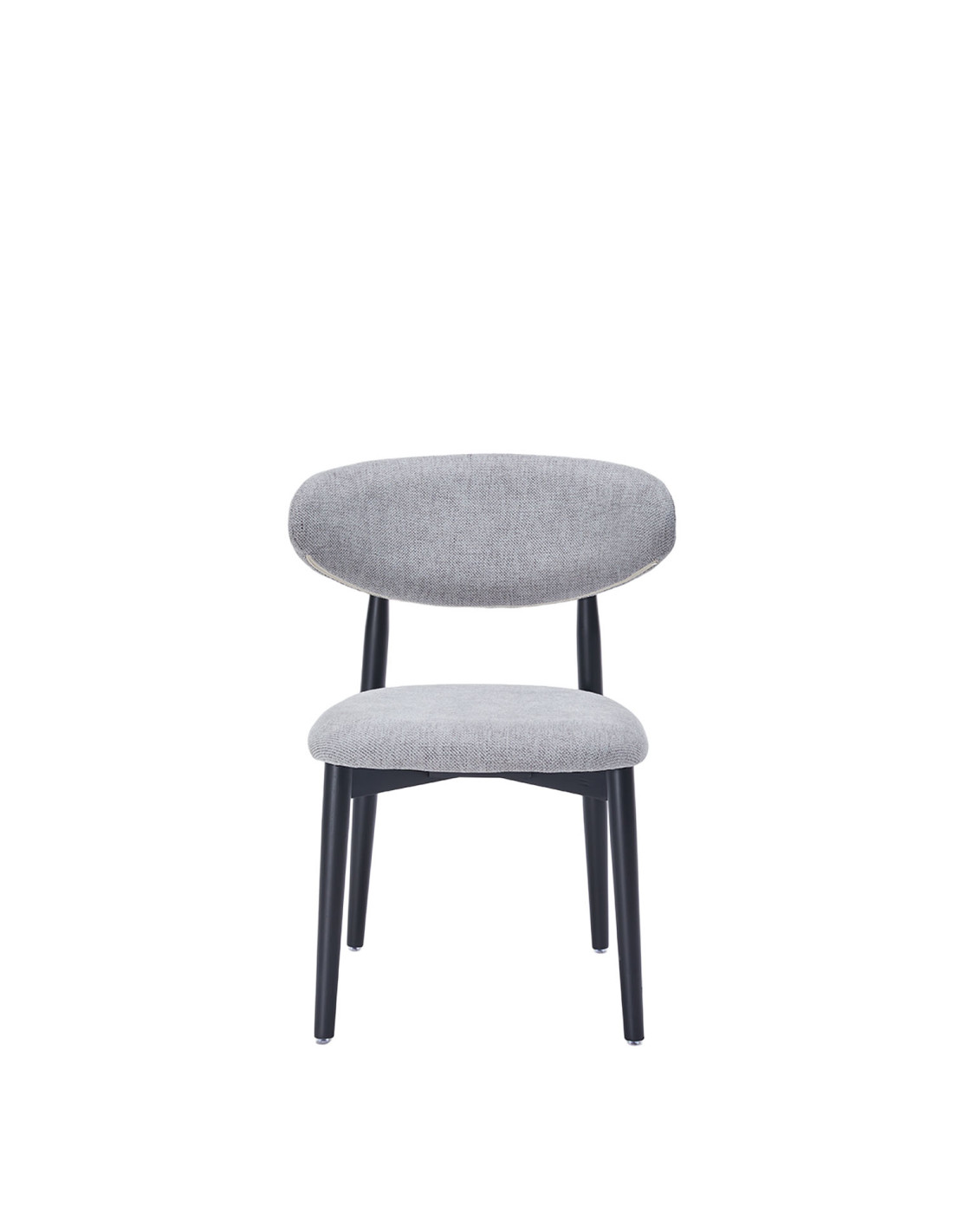 Set de 2 sillas de comedor Guadalupe gris, tapizadas en tela con estructura de madera y asiento cómodo de espuma. Ideales para comedores modernos que buscan confort, resistencia y estilo.