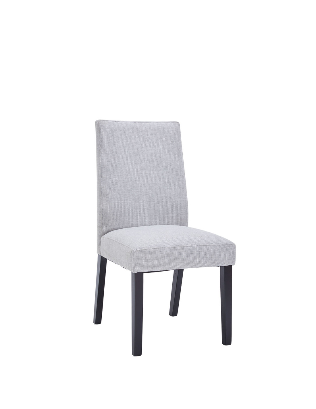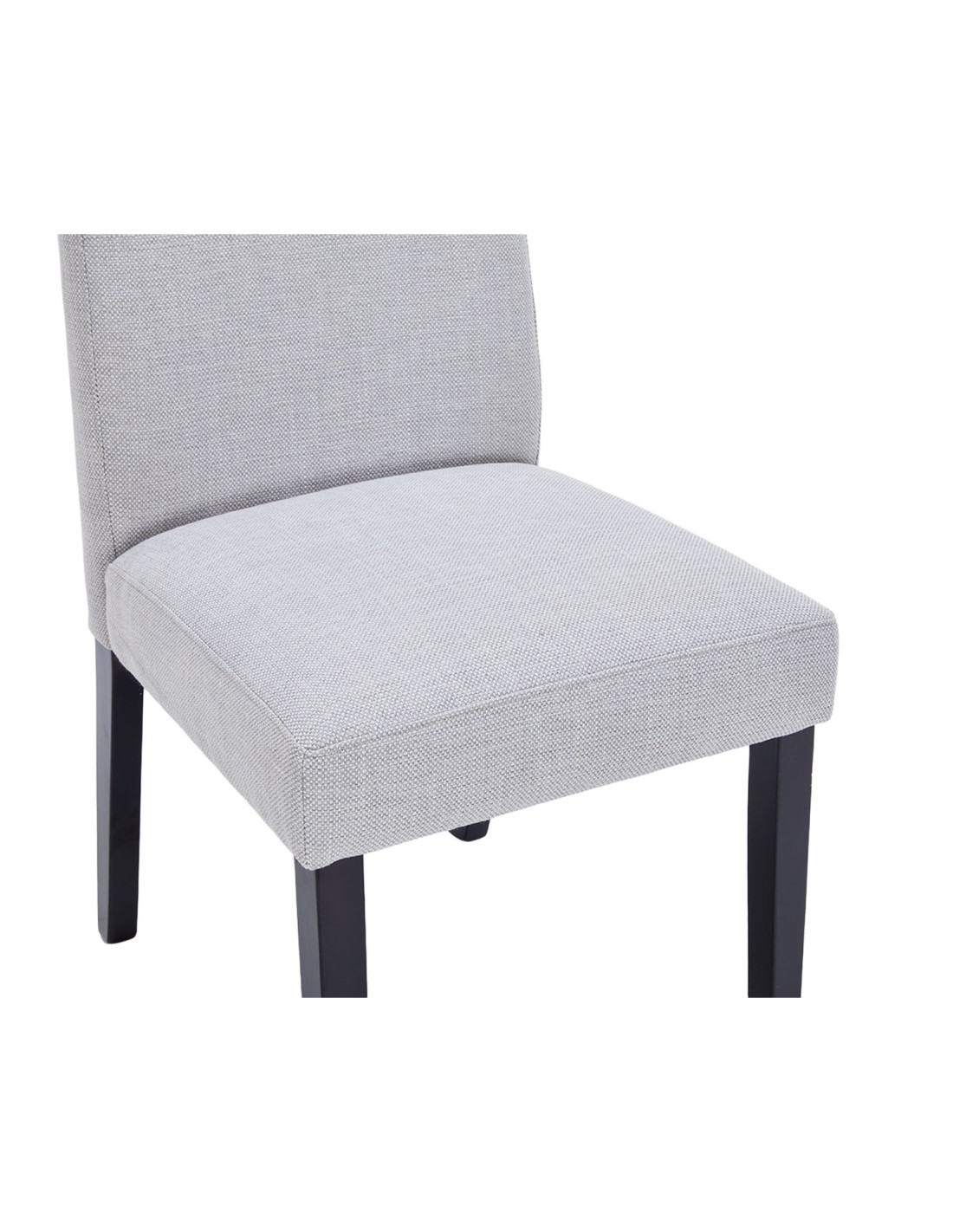 Silla de comedor Jules gris claro con tapiz en tela y estructura de madera. Cómoda, resistente y elegante, ideal para comedores modernos que buscan confort y diseño funcional.