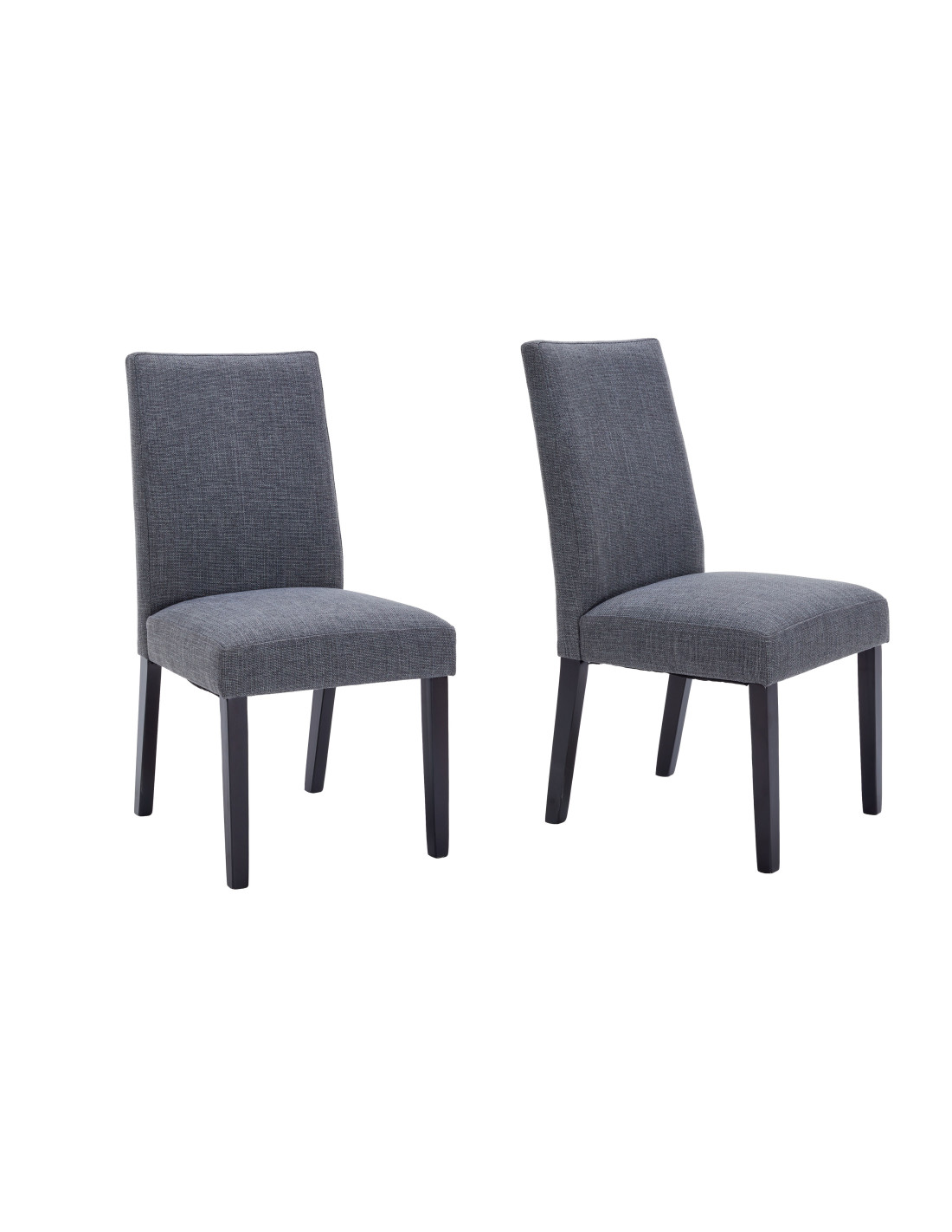 Set de 2 sillas de comedor Jules gris oscuro con tapiz en tela y estructura de madera. Cómodas, firmes y elegantes, ideales para comedores modernos que buscan estilo y resistencia.